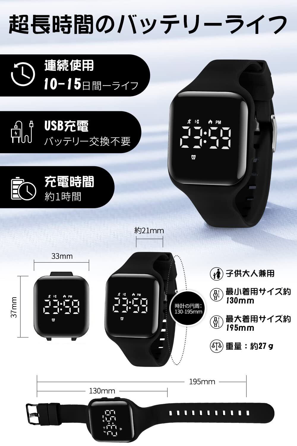 デジタル 腕時計 男の子 子供 活動量計 キッズ 女の子 5ATM防水 充電式 スポーツウォッチ 歩数計 距離 アラーム 日付と曜日 ストップウォッチ 長持ちバッテリー 知育 誕生日 人気 ギフト 小学生 中学生 日本語説明書付け