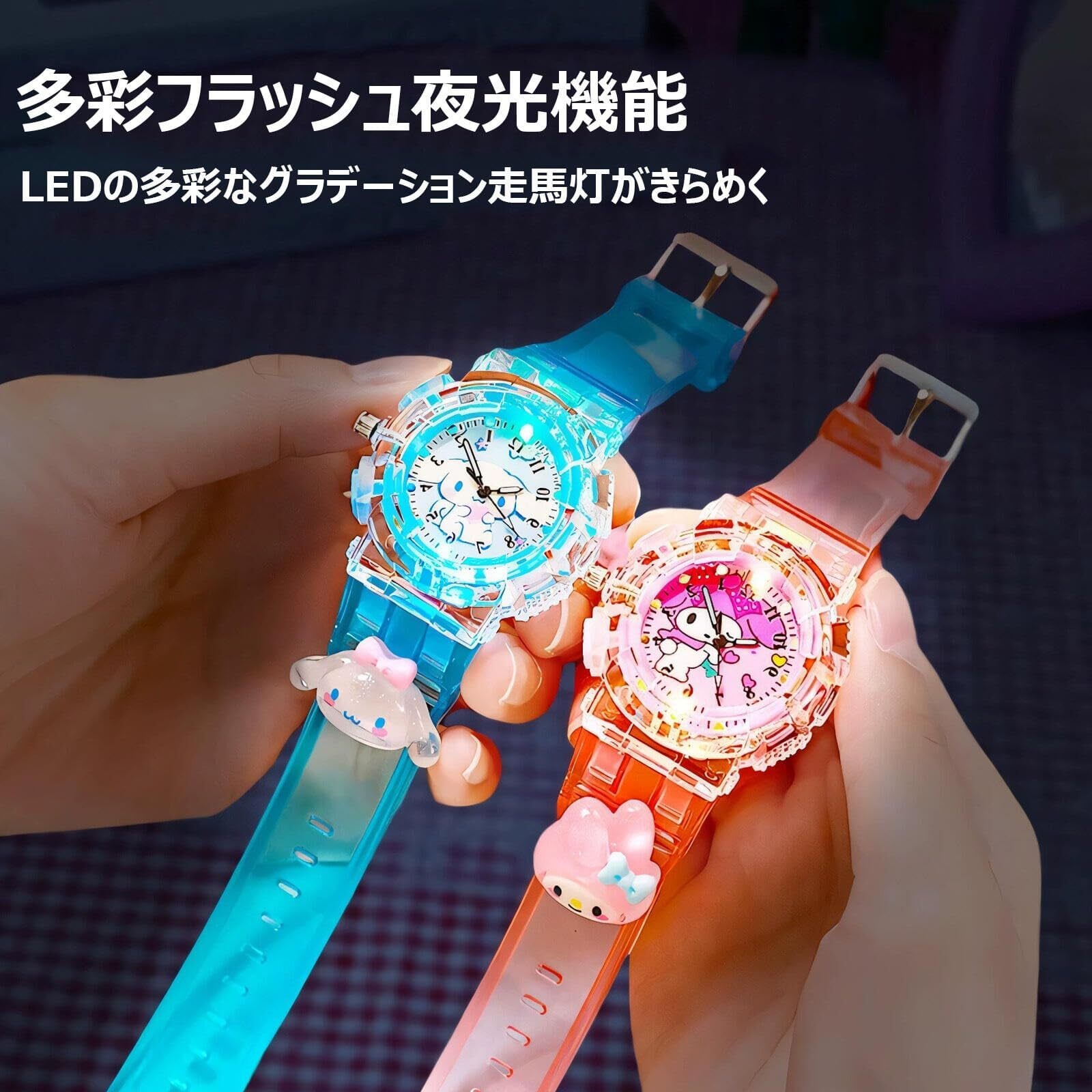 特別な光る機能がついており、暗い場所でも楽しく時間を確認できます。お子様が友達と遊ぶ時や特別な場面でも、その機能が喜びをもたらします。安心して身に着けられるクオーツ式ウォッチは、正確な時間をお知らせします。