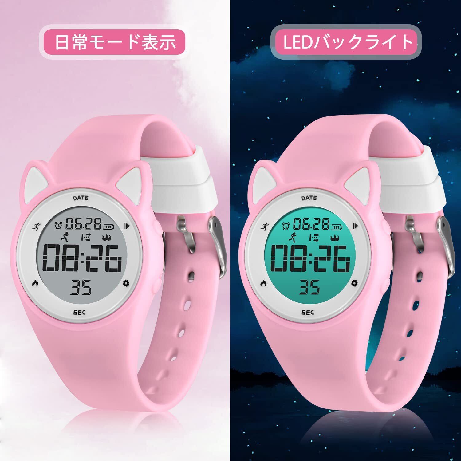 BEN NEVIS 腕時計 猫 女の子 ピンク 万歩計 キッズ 活動量計 充電式 子供 デジタル腕時計 防水 スポーツウォッチ 万歩計 振動式アラーム/日付/曜日/ストップウォッチ/長持ちバッテリー ガールズ 誕生日 入学祝い プレゼント