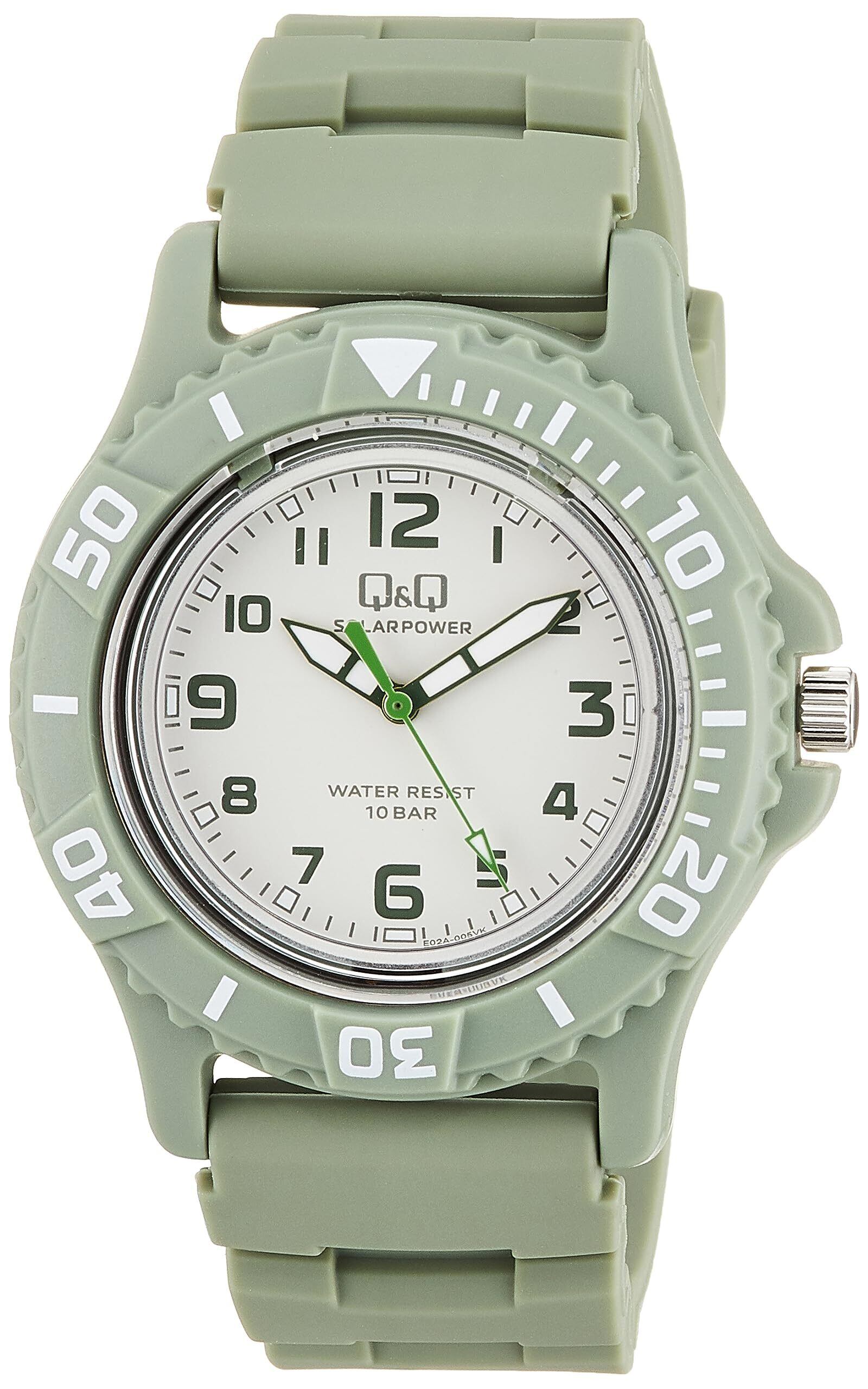\【新着商品】[シチズンQ&Q] 腕時計 キューアンドキュー アナログ ソーラー 10気圧防水 ウレタンベルト E02A-005VK メンズ グリーン/
