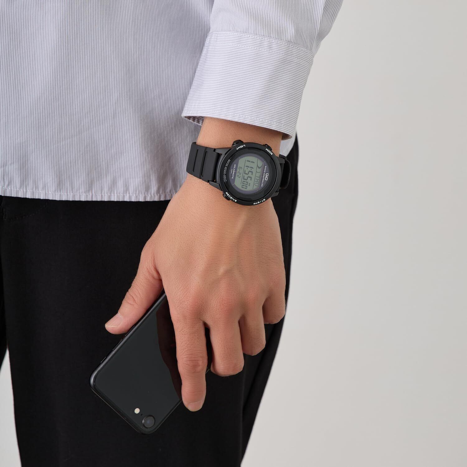 このモデルは、シンプルでありながら洗練されたブラックデザインが魅力です。デジタル表示と多彩な機能が組み合わさっており、カジュアルからビジネスシーンまで幅広く活用できるアイテムです。