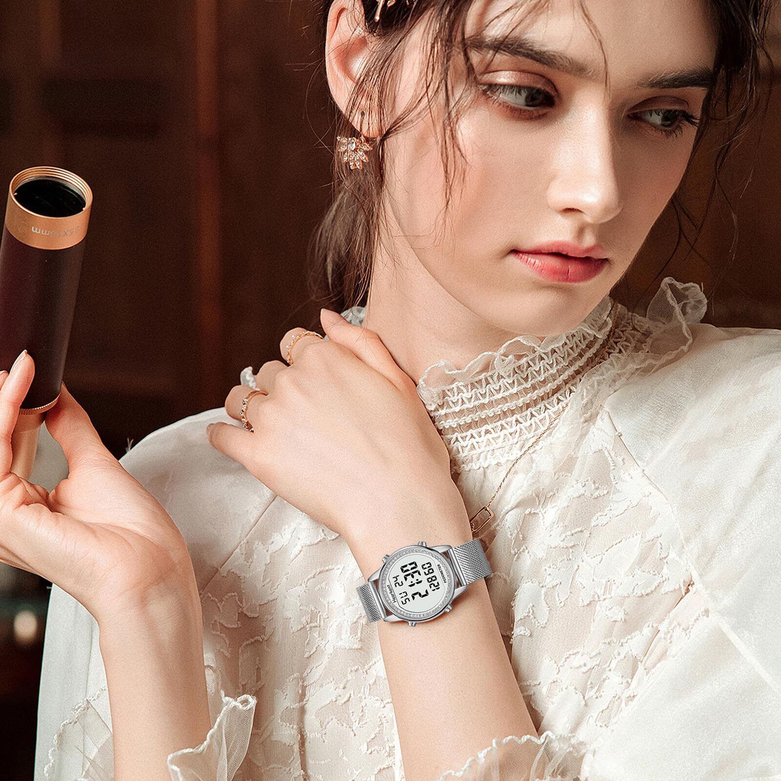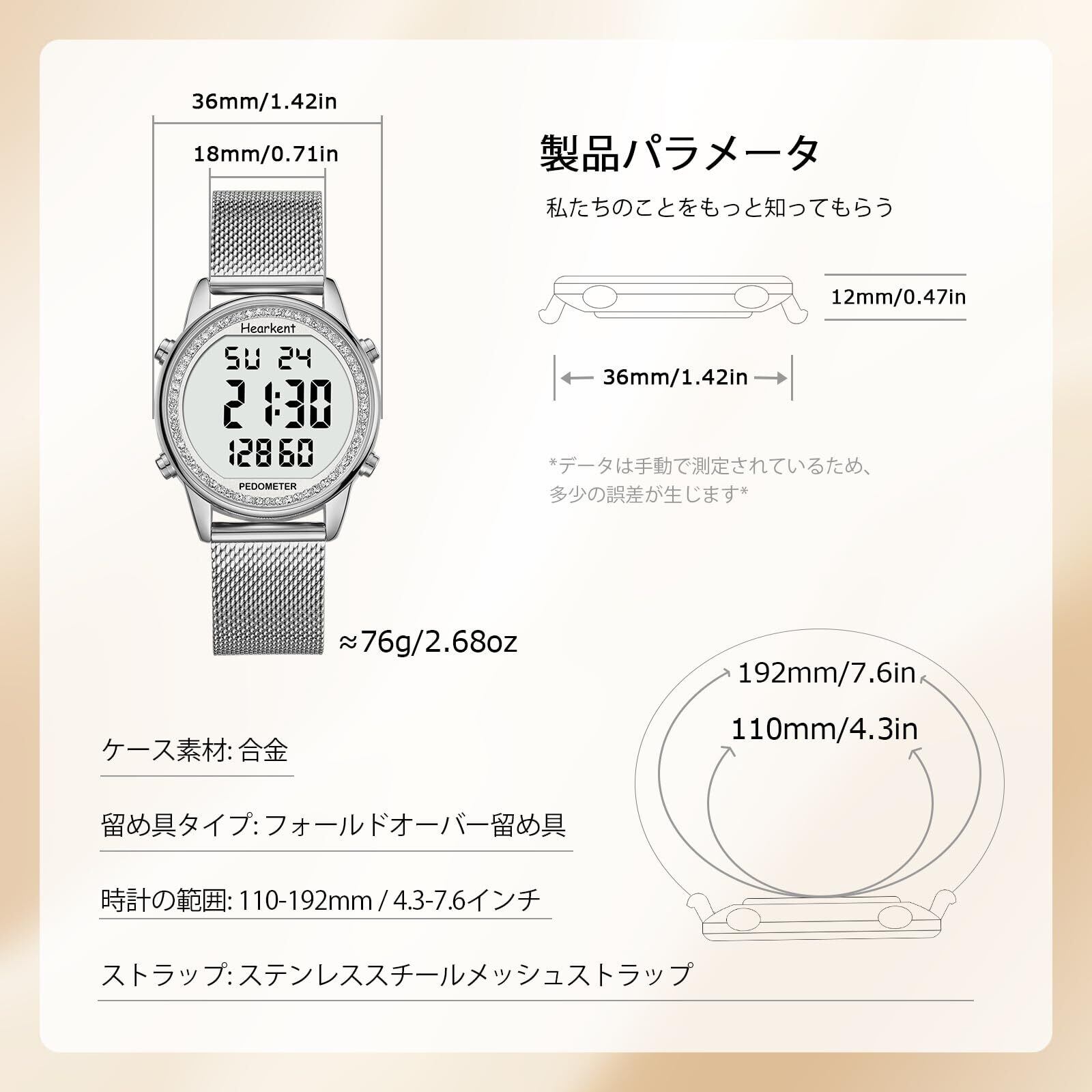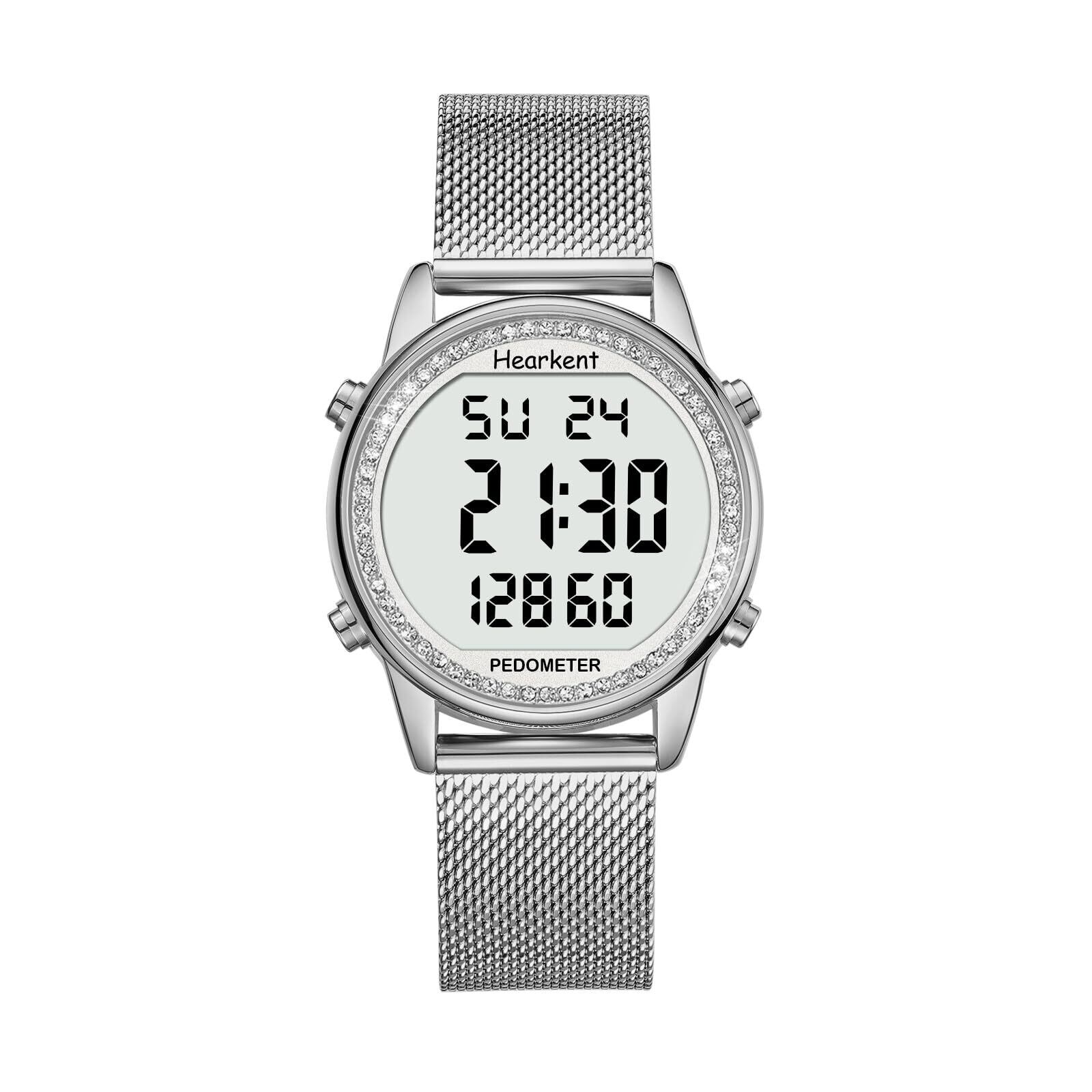 【特価セール】Hearkent レディース歩数計ウォッチ、防水、バックライト、歩数、走行距離、カロリー、カウントダウン、ストップウォッチ、アラーム、時間ごとのリマインダー、大型デジタルディスプレイ、無制限に調節可能なストラップ