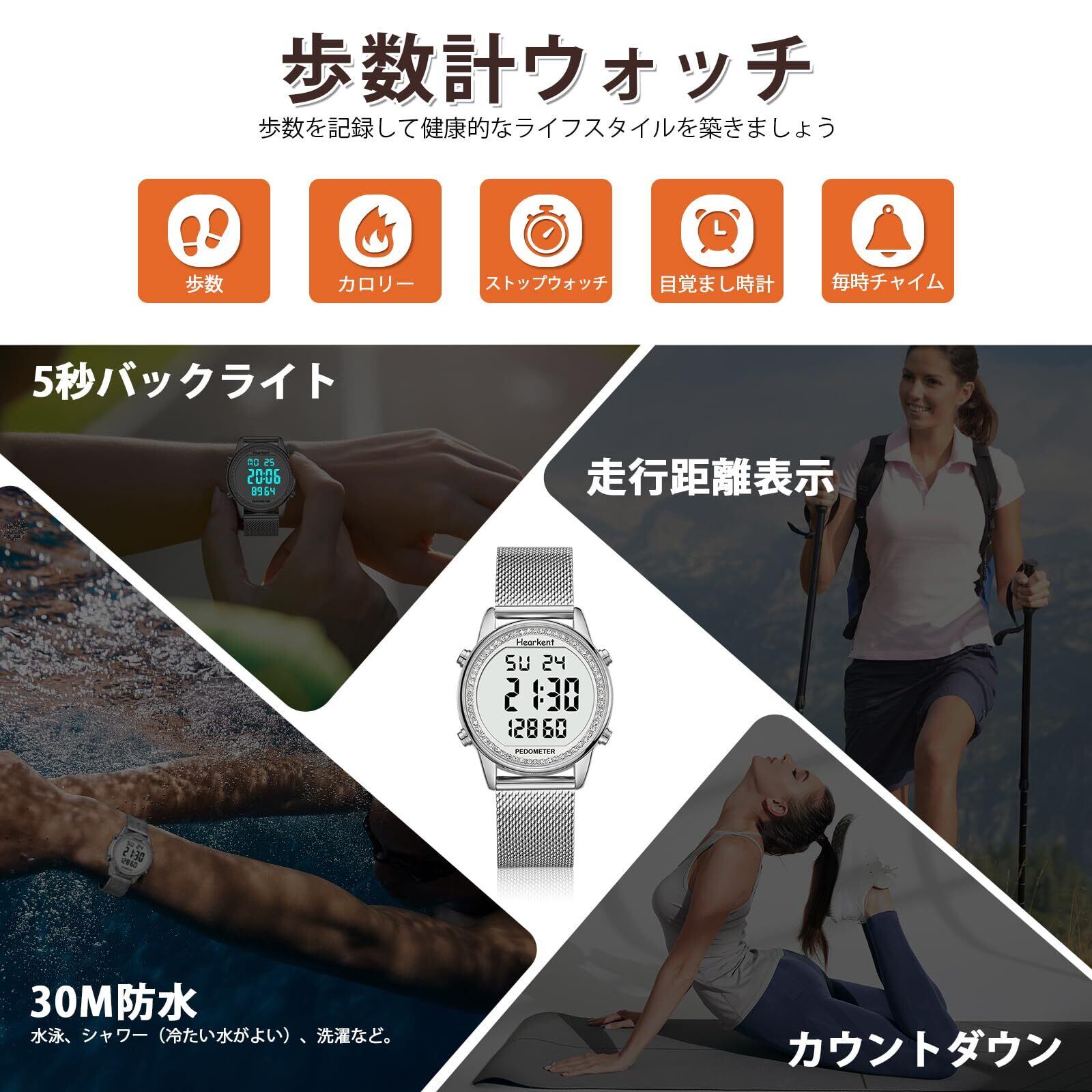 \【特価セール】Hearkent レディース歩数計ウォッチ 防水 バックライト付/