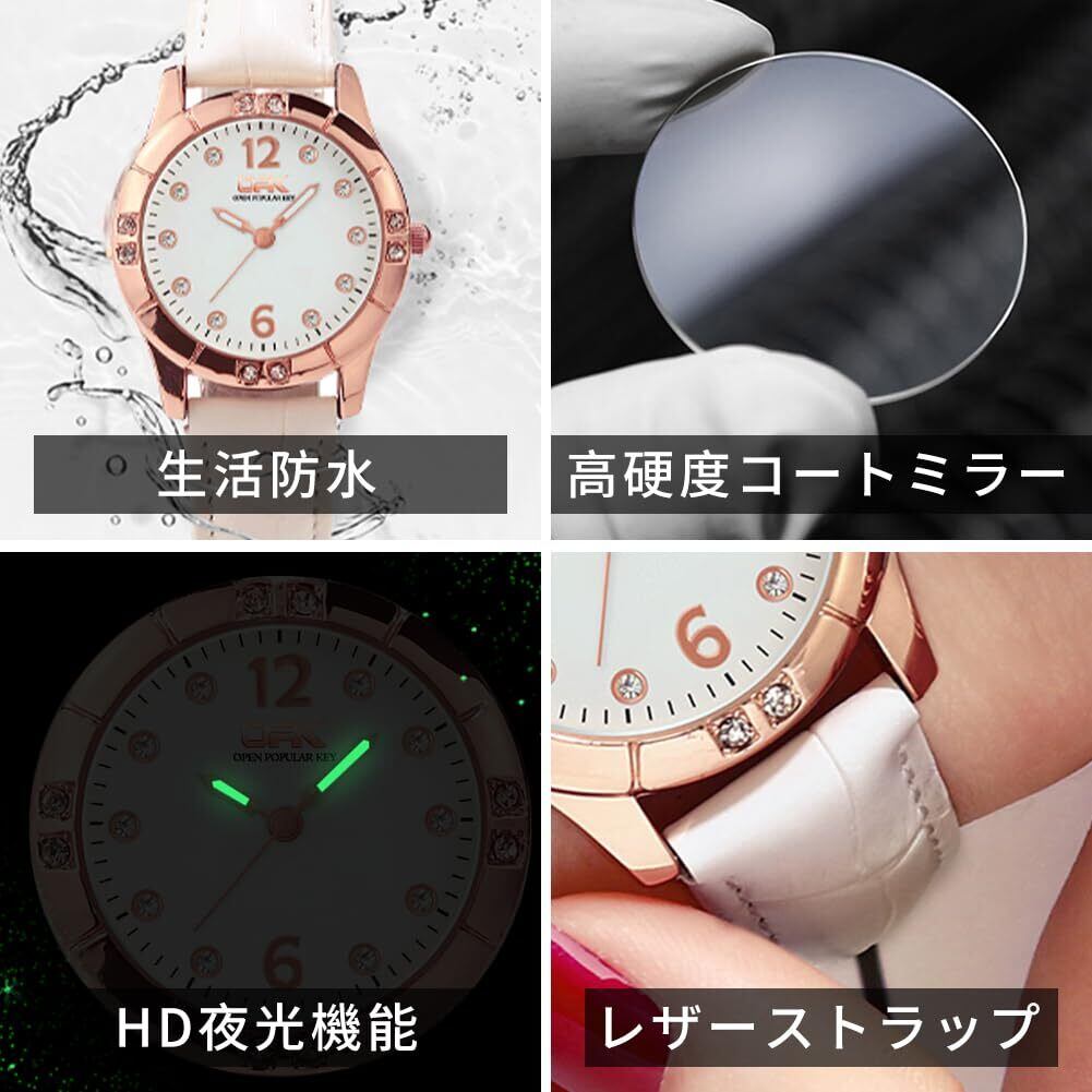 OPK 腕時計レディース クオーツ うで時計レディース シンプル腕時計 おしゃれ 華やか 軽い時計 見やすい 防水 夜光 快適 ホワイト