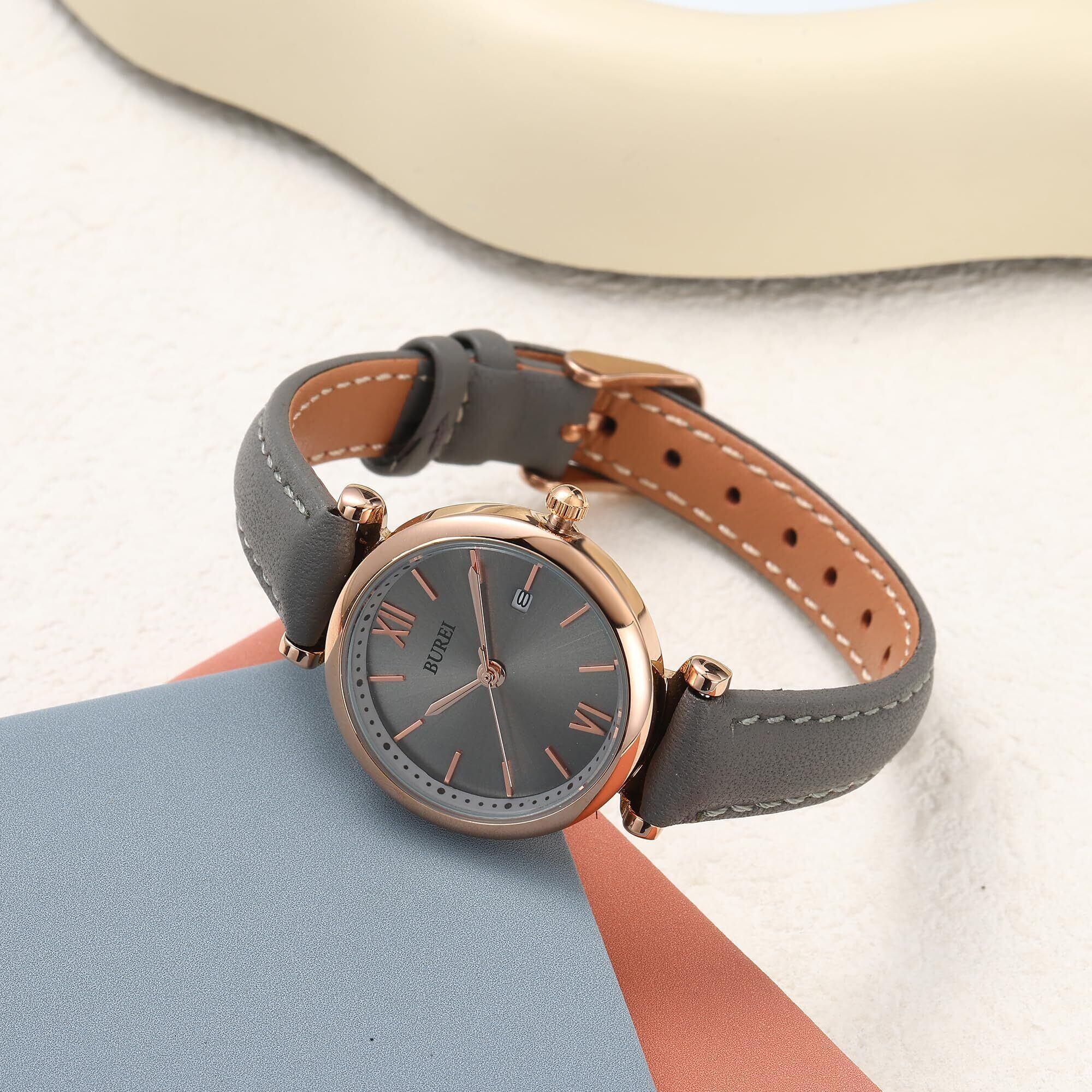 BUREI 腕時計 レディース クオーツ アナログ表示 革ベルト 細め おしゃれ 防水 かわいい シンプル 軽い 女性 学生 うで時計カジュアル ビジネス 仕事 日常通勤 彼女 娘 妻 母 誕生日 お祝い プレゼント (グレー, グレー)