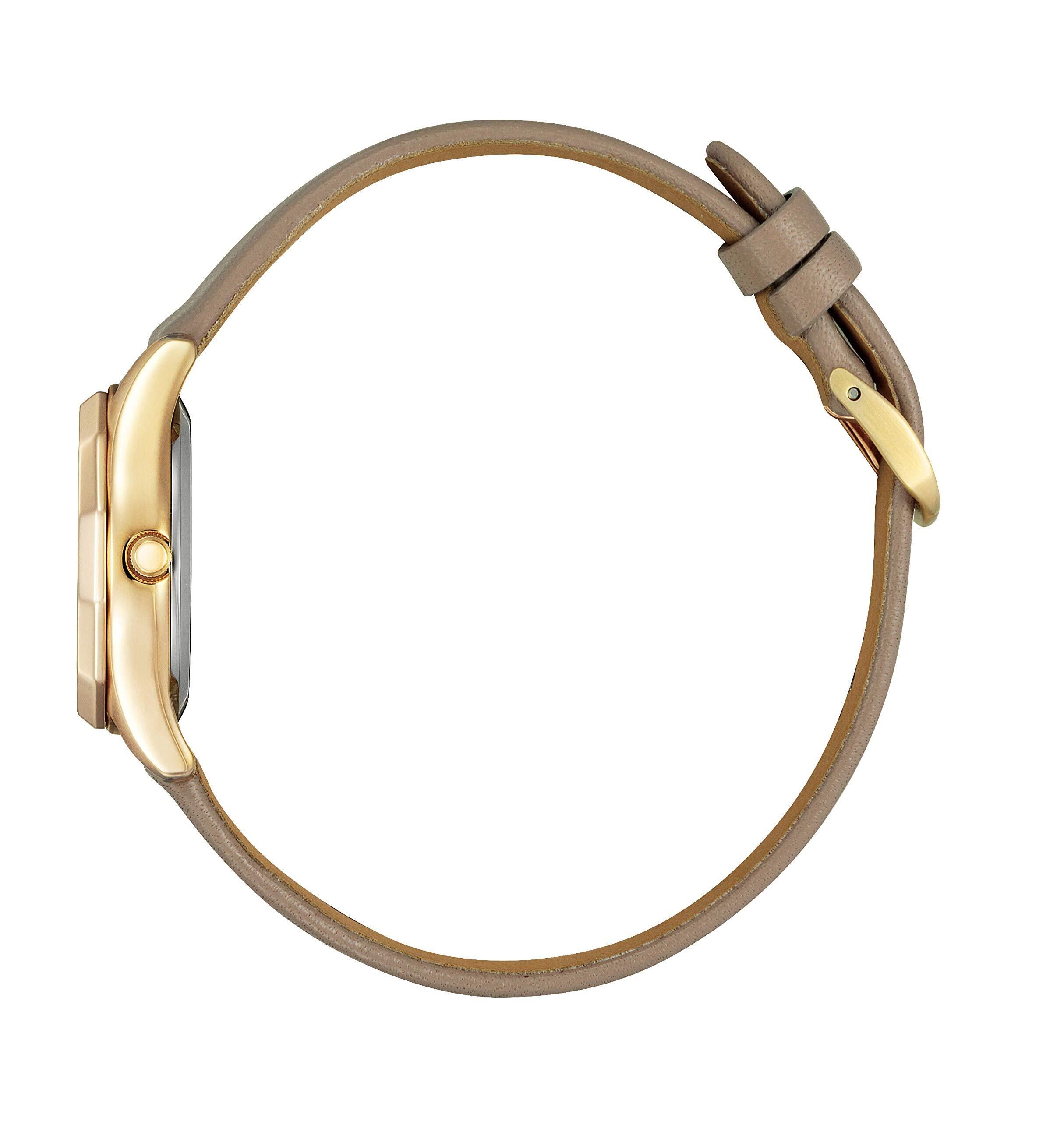 【どんなシーンでも、どんなファッションにも合わせやすい人気モデル】今っぽさとクラシカルな雰囲気を両立した、デイ&デイト付きのソーラーテック搭載モデル。少し大きめのケースにアラビア数字のインデックスを組み合わせて、かわいらしさと見やすさを両立。きちんとしたい日にも、カジュアルなおしゃれを楽しみたい日にも活躍する1本です。12角形のベゼルに反射するように文字板にもラメパターンが入っており、いろいろな角度から輝く表情を楽しめます。「毎日どんな瞬間も輝けますように」という想いを込めています。