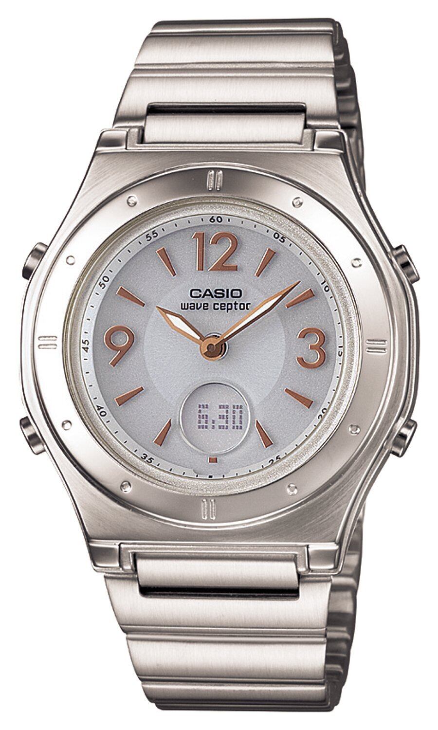 カジュアルなデザインでオン・オフを問わず気軽に使える女性用ソーラー電波時計。電波受信機能は日本のほか、アメリカ・ヨーロッパ・中国の標準電波にも対応する最新のマルチバンド6。また、6時位置の液晶部分には曜日や日付のほか、ワールドタイムやタイマーなど便利な機能を搭載。メタルバンドにはサイズ調整が簡単にできるフリーバックルを採用。