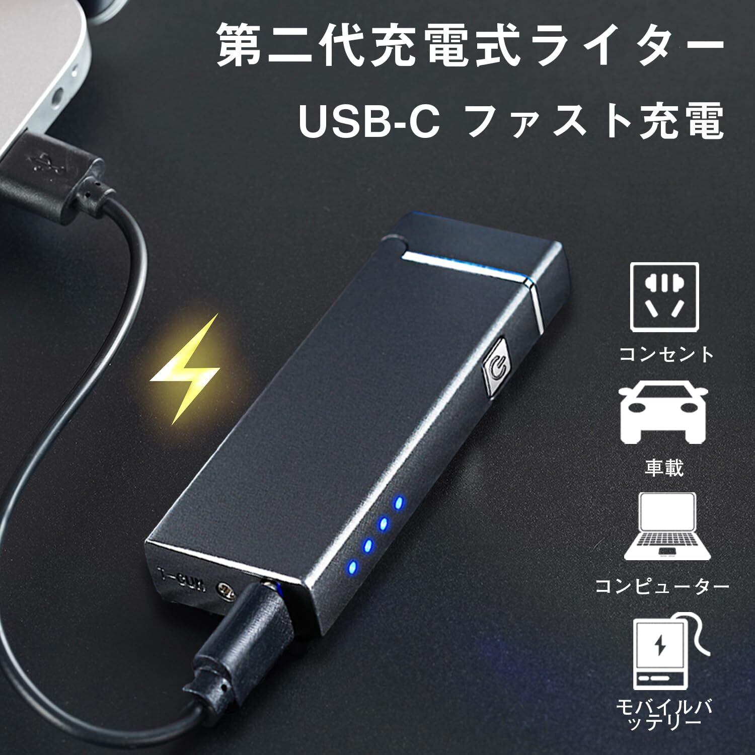 点火用ライター USB Type C プラズマライター 第二代充電式 小型 防風 電池残量表示 記念日 プレゼント