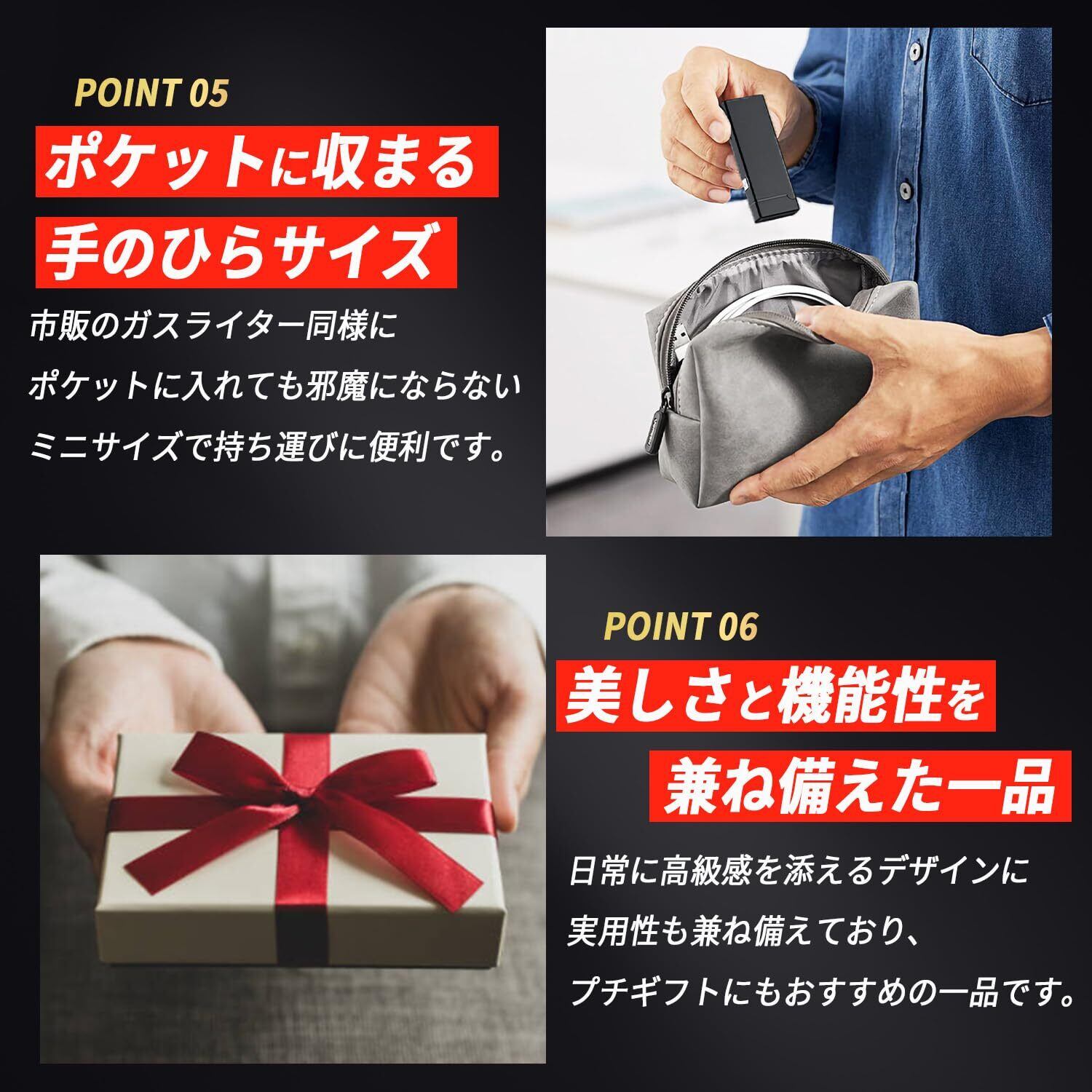 ● 特徴:USB-C充電式、防風設計、おしゃれなデザイン