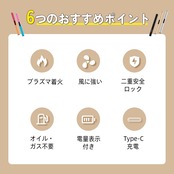 ● 特徴:充電式USBライター、防風設計、安全ロック付き