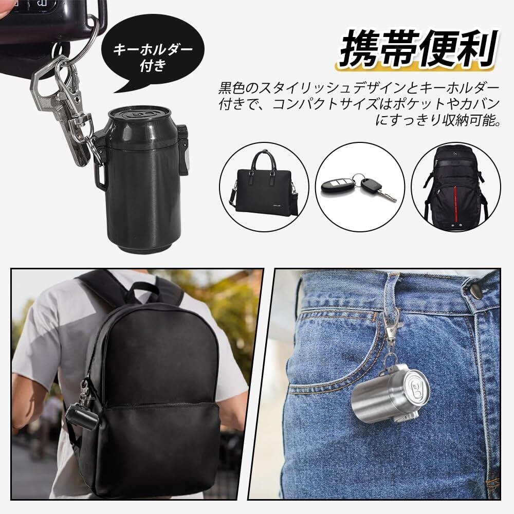 4.【携帯便利】黒色のスタイリッシュデザインとキーホルダー付きで、コンパクトサイズはポケットやカバンにすっきり収納可能。アウトドア、旅行、キャンプ、車内など、さまざまなシーンで手軽に持ち運べる実用アイテムです。