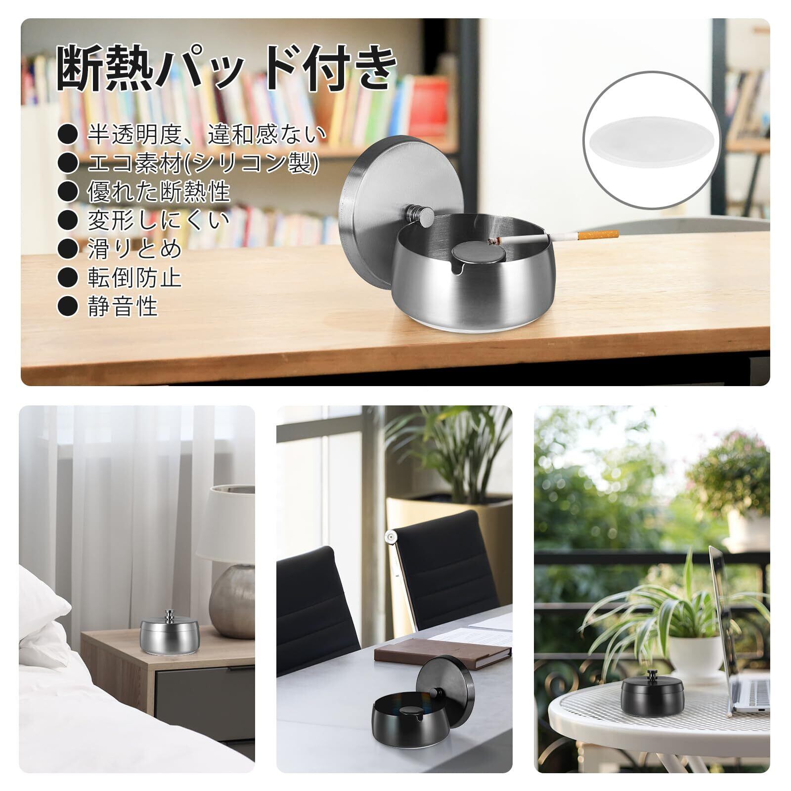 【断熱&滑りとめ】ゴム製の断熱パッドつき、優れた断熱性があったため、木製やプラスチックの卓上に置いても灰・吸い殻が熱すぎてテーブルを傷つける心配はありません。静音性もあるので、卓上に置く時に生じる金属音も鳴りずらくなります。また、断熱パッドの片面にはつや消し加工されており、滑りやすい場所に置いても倒れやすくなくて、滑り止めの効果も期待できます。