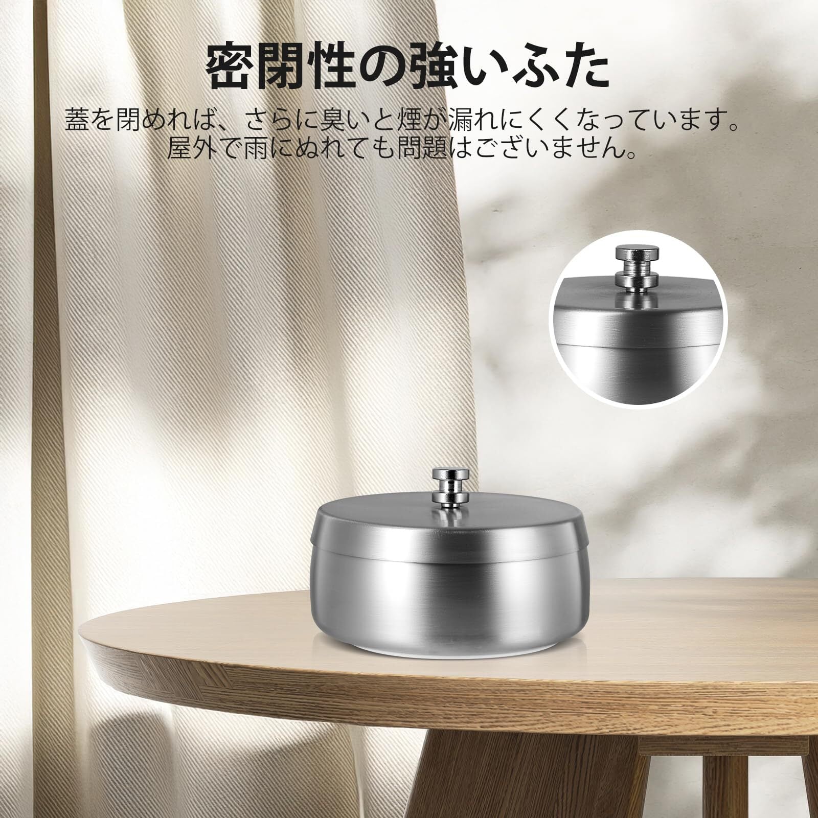 Yinnhomの灰皿は、シンプルでスタイリッシュなデザインが魅力。ステンレス製のため、耐久性は抜群。蓋付きの設計により、灰の飛散を防止し、清潔感を保ちながら喫煙を楽しめるアイテムです。