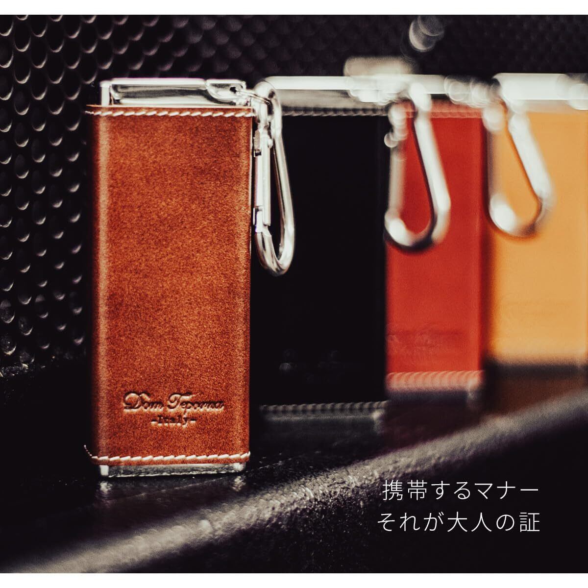 \【新着商品】[DomTeporna] 灰皿 携帯 蓋付き 本革 おしゃれ タバコ におい対策 電子タバコ 吸い殻 携帯灰皿 カラビナ 革 イタリアンレザー/