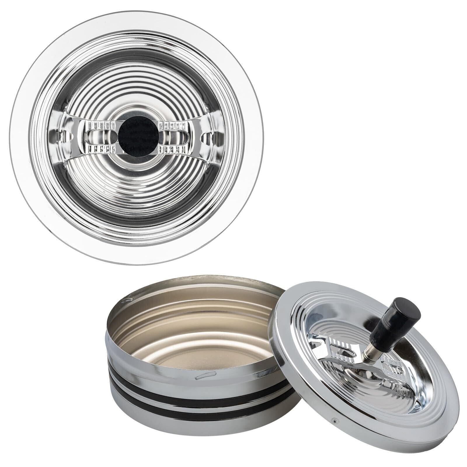 クロームとブラックの色合いが洗練されたデザインの灰皿シリーズです