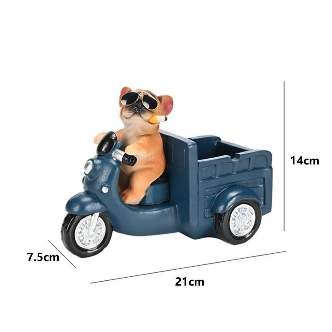 「ユニークなデザイン」 この灰皿は、サングラスをかけ、タバコを吸いながら三輪車に乗った可愛らしい犬の姿をデザインに取り入れており、ユニークな外観で目を引きます。