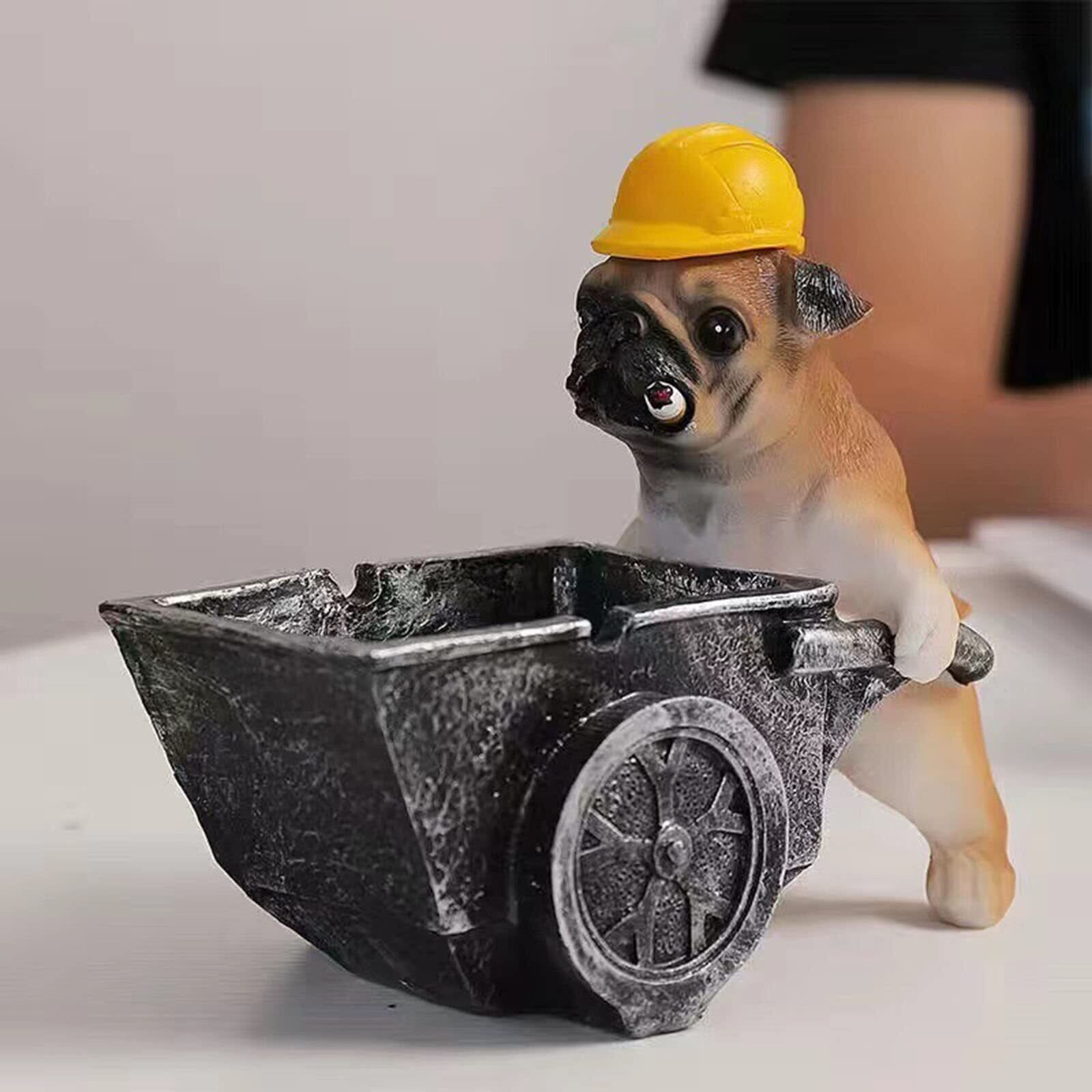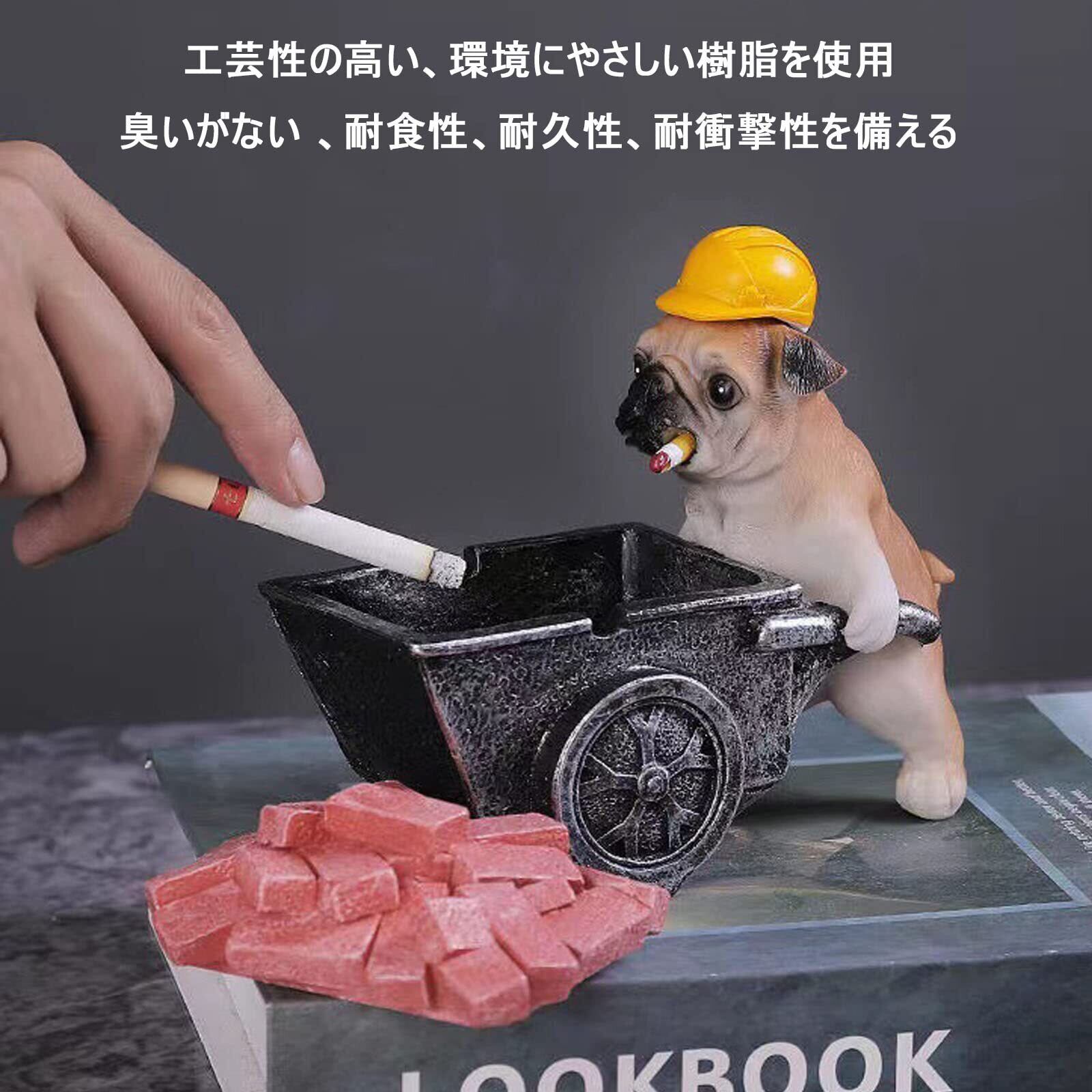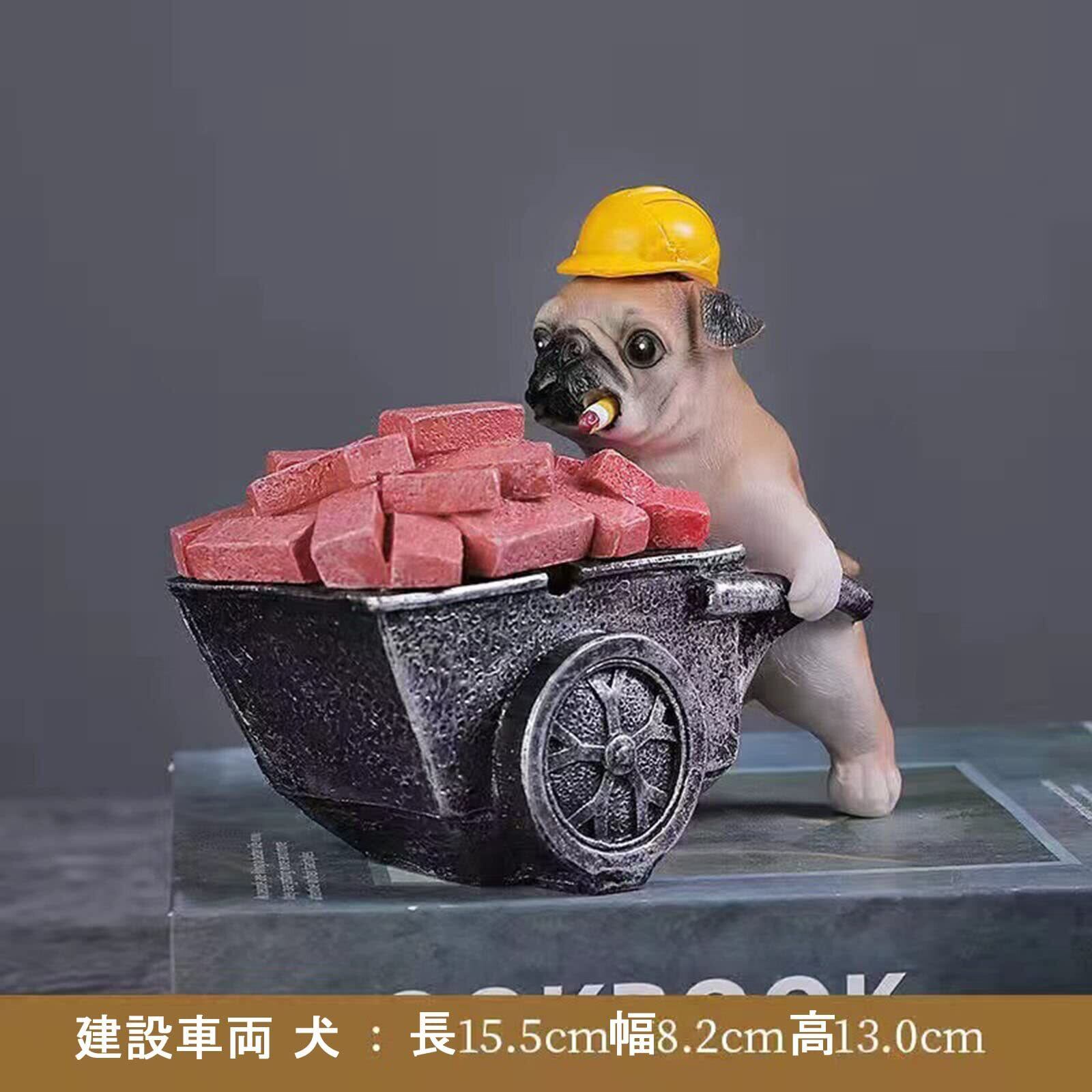 \【特価商品】SKYROSEXSDCT 灰皿 卓上 おしゃれ パグの灰皿 防臭 大容量 樹脂製 蓋つき オフィスの装飾用/家庭/おもしろ誕プレ (建設車両犬)/
