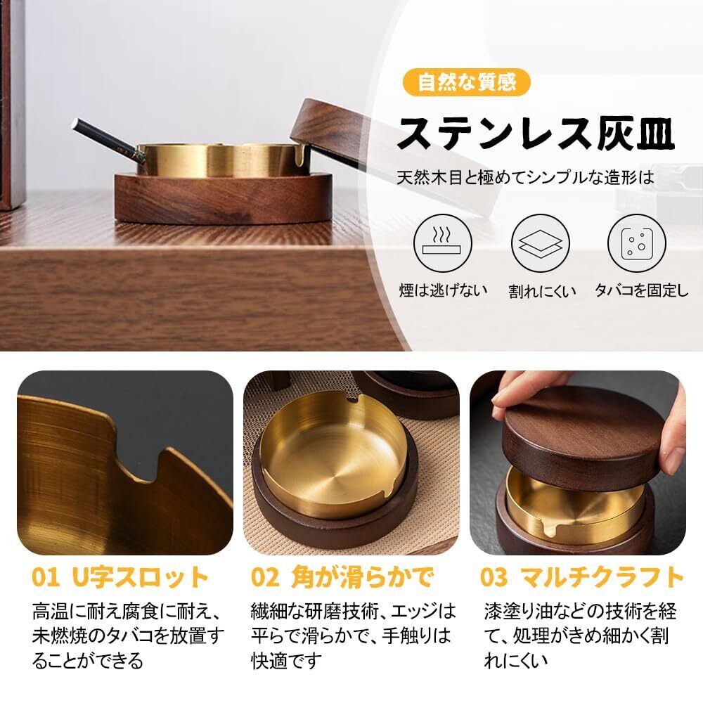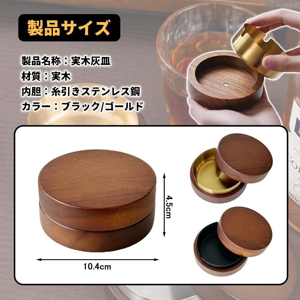 UrbanPulse ふた付き 灰皿 ステンレス × 木製 防臭 密閉 卓上 屋外 室内 携帯可能 洗い可能 灰捨て簡単 ステンレス受け皿 インテリア 雑貨 喫煙具 プレゼント ギフト 葉巻 喫煙具 オフィス 卓上 タバコ用灰皿 (ゴールド)