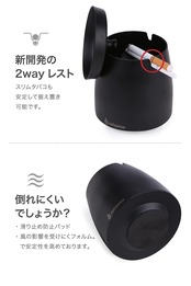 新開発2wayレスト:スリムタバコも安定して置けるレストを開発。細いタバコ、通常サイズのタバコ、両方とも安定して挟み込めます。風などでタバコが飛んでいくリスクを大幅に軽減。