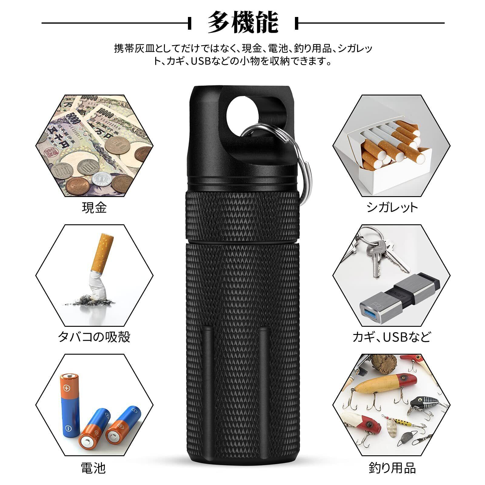 【持ち運び便利&多機能】キーホルダーや登山カラビナが付属しており、バッグやパンツに取り付けることができます。軽量で非常に持ち運びが便利です。また、ポータブル灰皿としてだけでなく、現金、アクセサリー、タバコ、電池、USBなどの小物の収納にも使用することができます