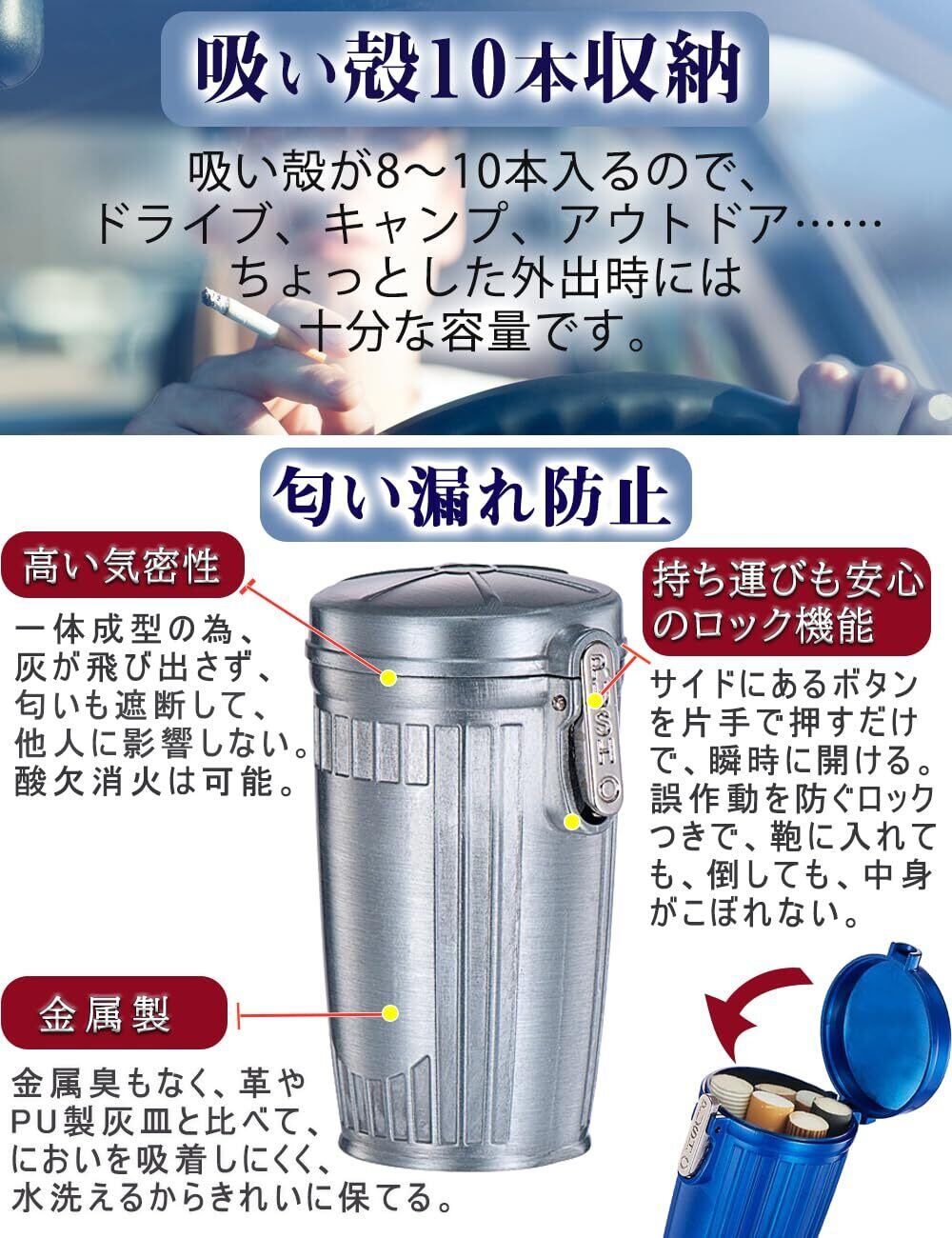 こちらの灰皿は特に密閉構造に優れており、タバコの煙やにおいが漏れにくい設計となっています。大容量なので、一度の外出でもストレスなくご使用いただけます。これで、周囲を気にせず気持ちよく喫煙を楽しむことができます!