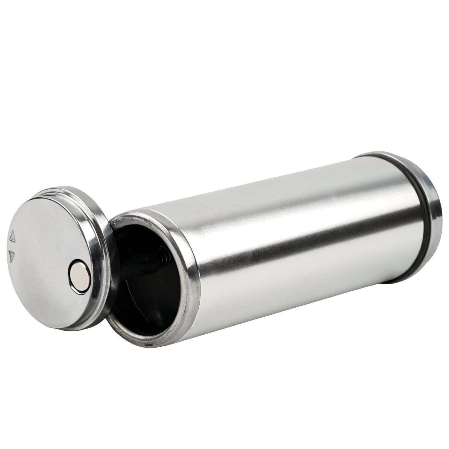 ●素材に軽くて丈夫なアルミを使った携帯灰皿●上蓋をスライドさせて吸殻を収納。下部はねじ込み式の取り出しキャップ●アイコスのヒートスティックやグローのネオスティックなどの吸い殻も収納できます●開閉は、片手でもできるので便利●様々な物に取り付けられるキーリング、フック付き