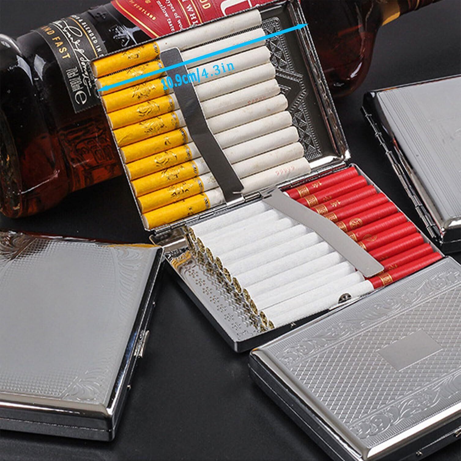 【高級素材】このメタルシガレットケースは軽くて持ち運びやすく、様々なポケットやバッグに簡単に入れることができ、頑丈なメタル素材はタバコや他のアイテムを潰さないようにし、湿気から遠ざけ、プラスチックケースのように簡単に壊れたり緩んだりしないことをします。タバコや名刺を傷から守ります。うっかりケースに座ったり踏んだりしても、タバコが曲がったり折れたりする心配がありません。