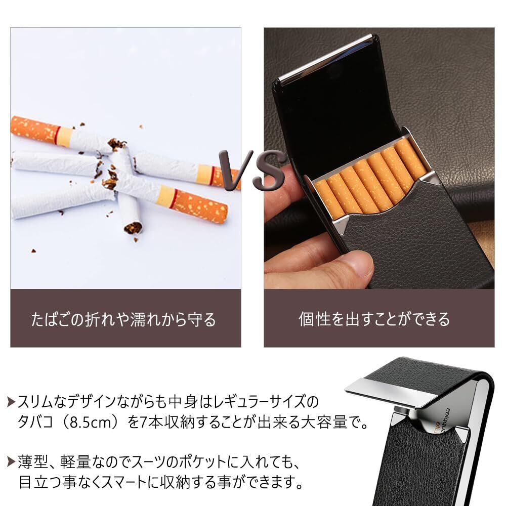 このシガレットケースは、タバコをしっかりと保護する設計が特徴です。内部はコンパクトながらも使いやすく、タバコを簡単に取り出せる構造になっています。最新のデザインは、外出時や家庭での使用に最適です。