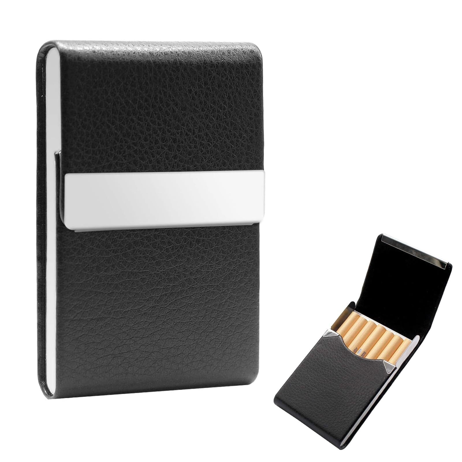 サムコス シガレットケース 皮革調 タバコ収納 (7本収納可能) おしゃれ かっこいい 男女兼用 たばこケース (ブラック)