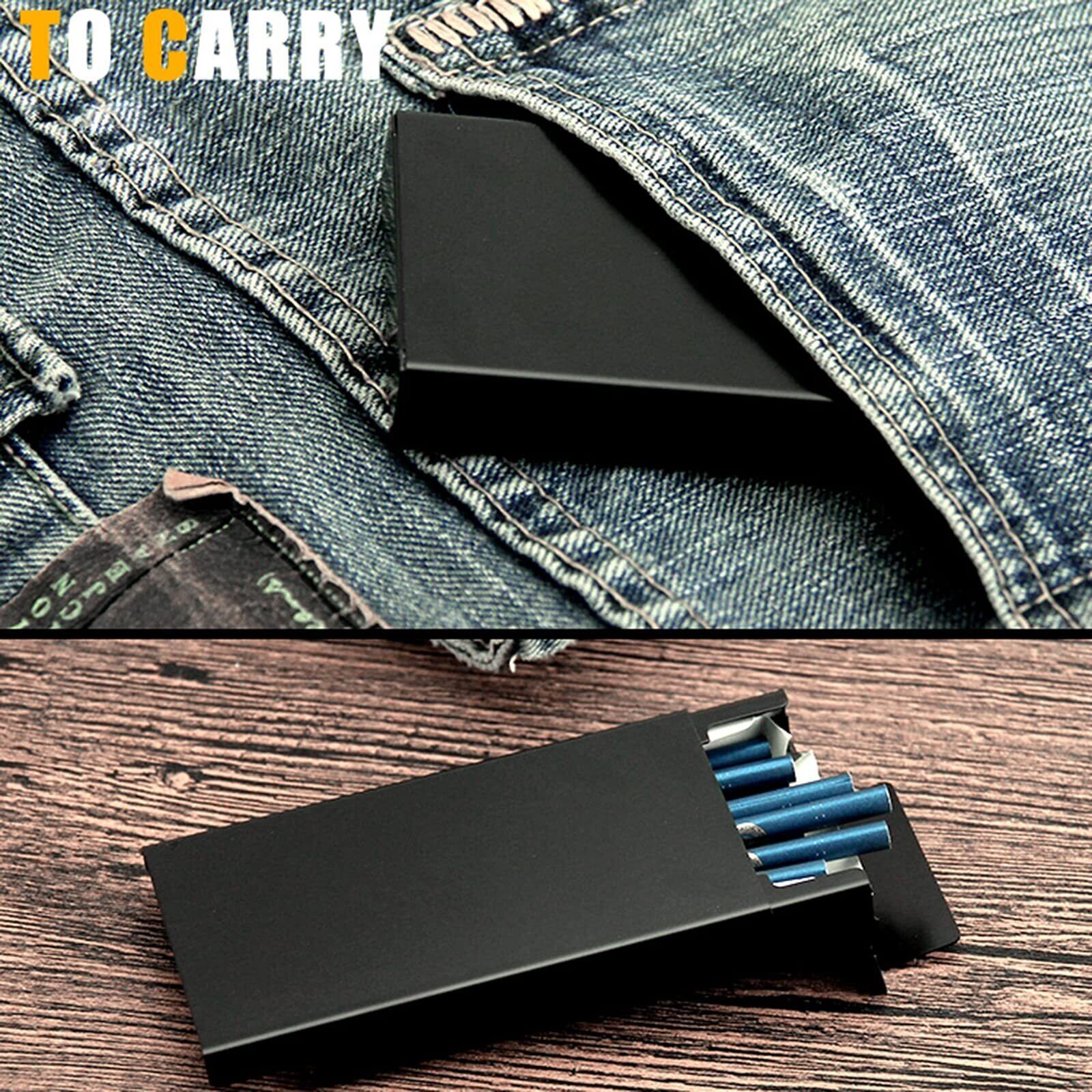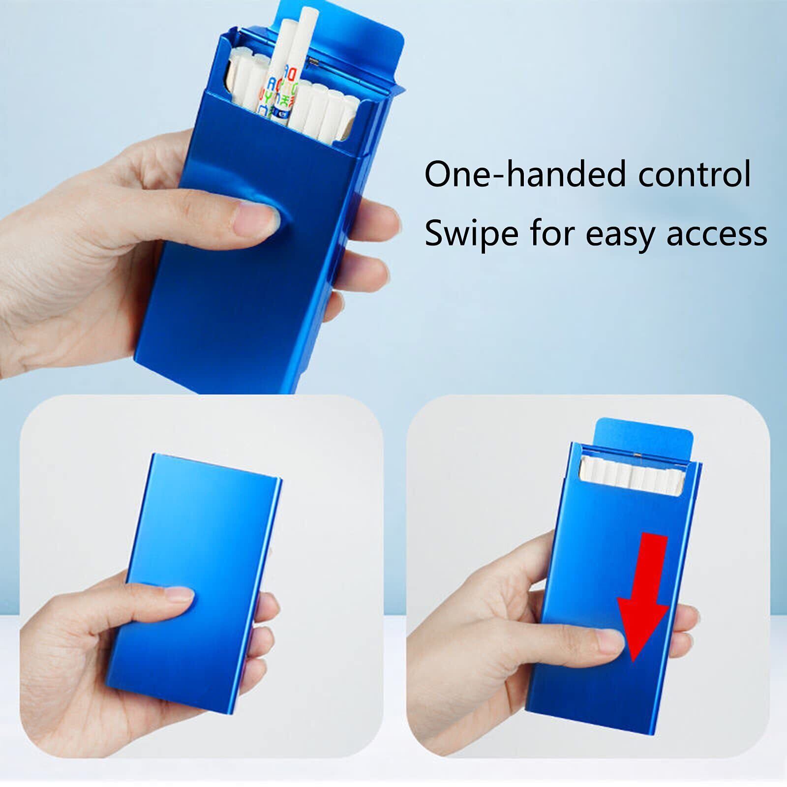 このシガレットケースは、高耐久性のアルミ合金を採用しており、タバコを外部の衝撃や湿気からしっかりと保護します。軽量で扱いやすく、ポケットやバッグに収まりやすいスリムなデザインです。日常運用において安心してお使いいただける商品です。