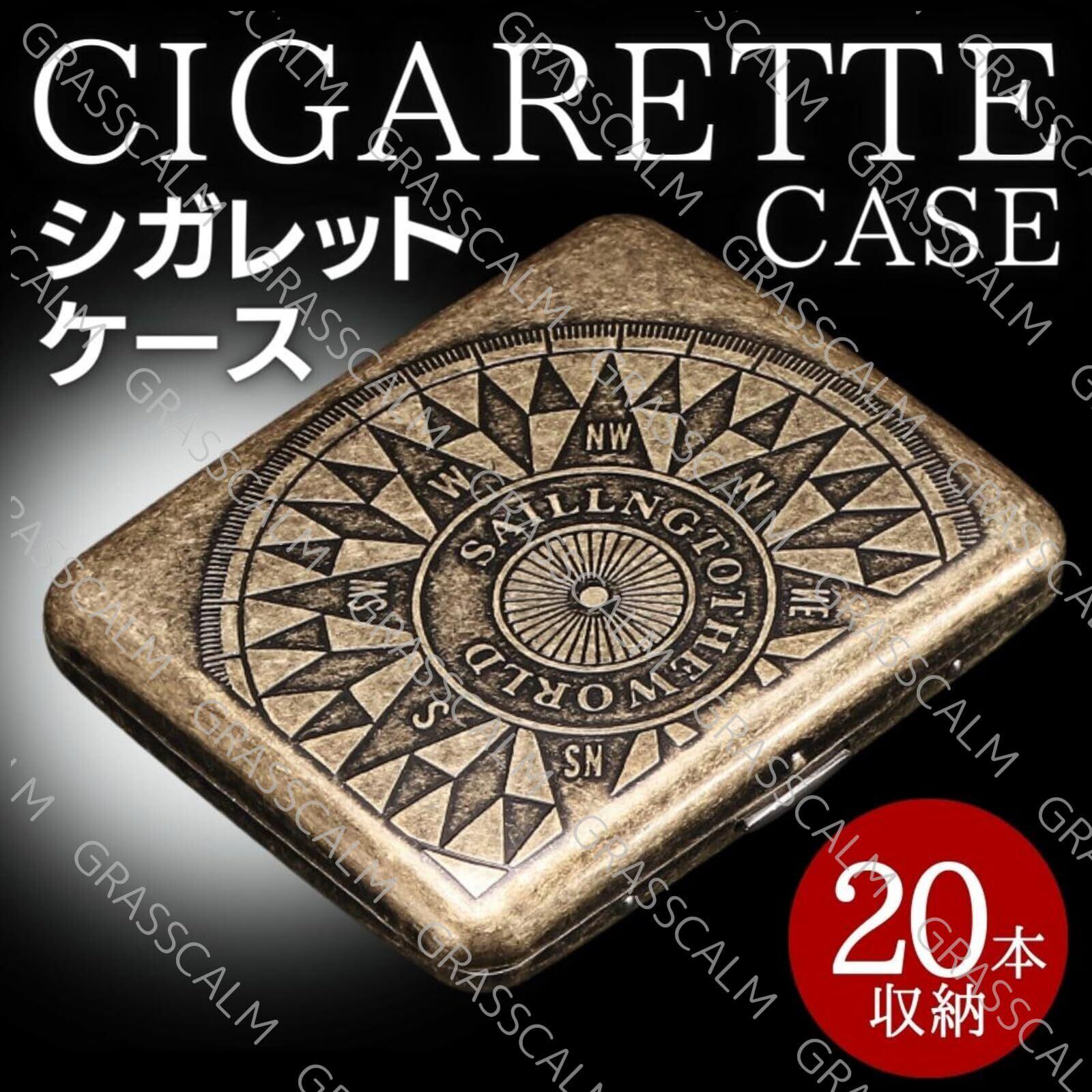 【特価商品】GRASSCALM アンティーク調 タバコ シガレット ケース 20本 タバコ収納 煙草入れ たばこ 薄型 スリム おしゃれ かっこいい 男女兼用 (コンパス)