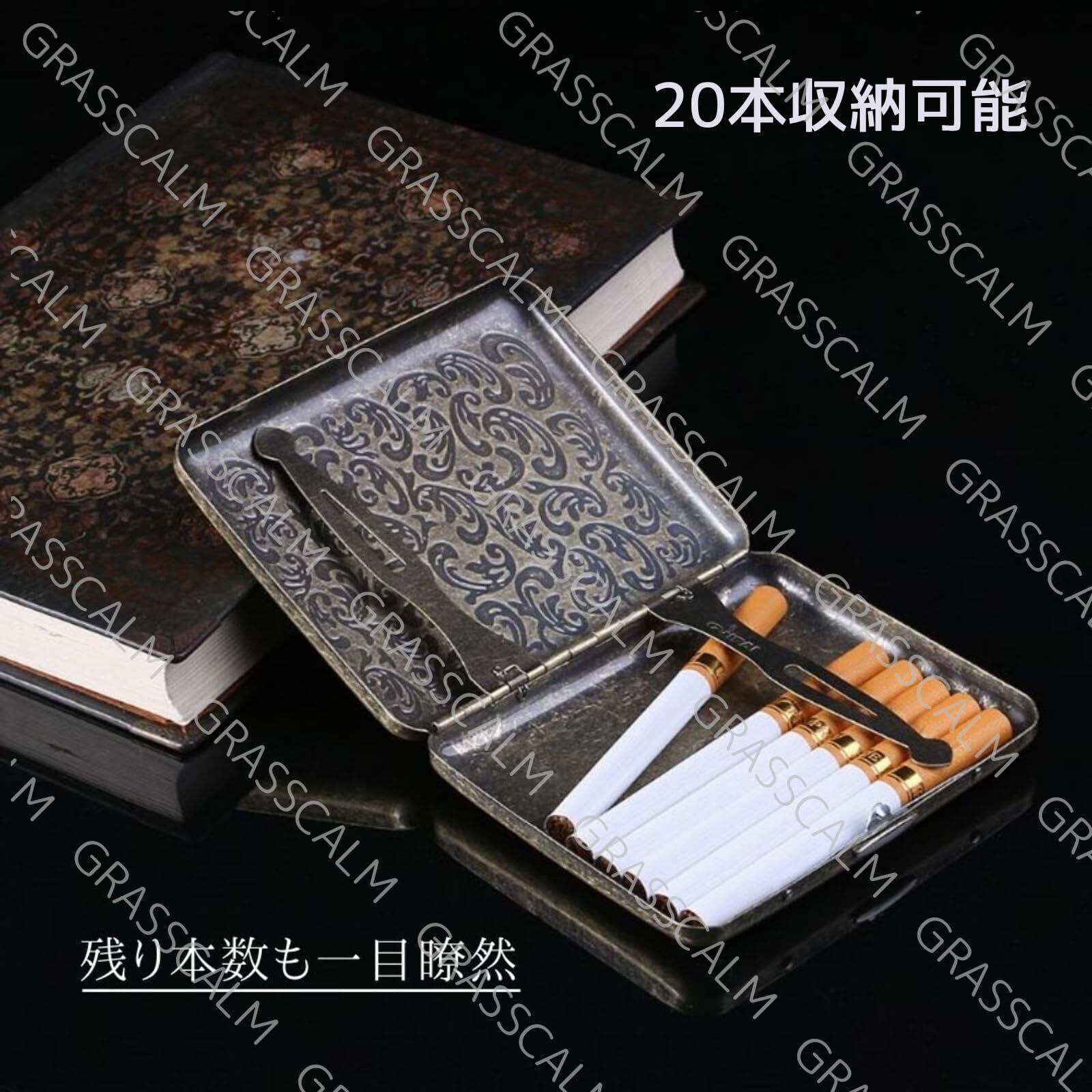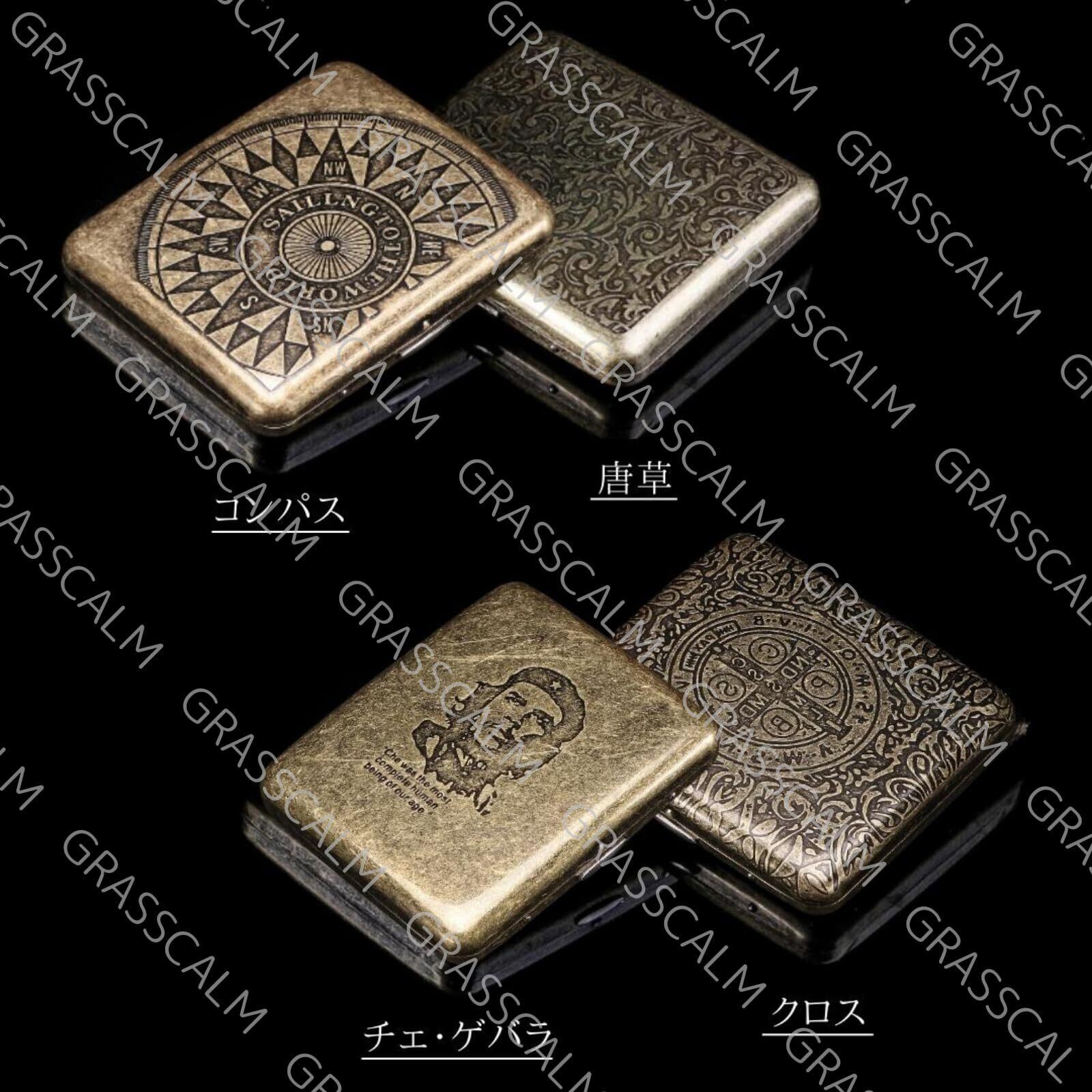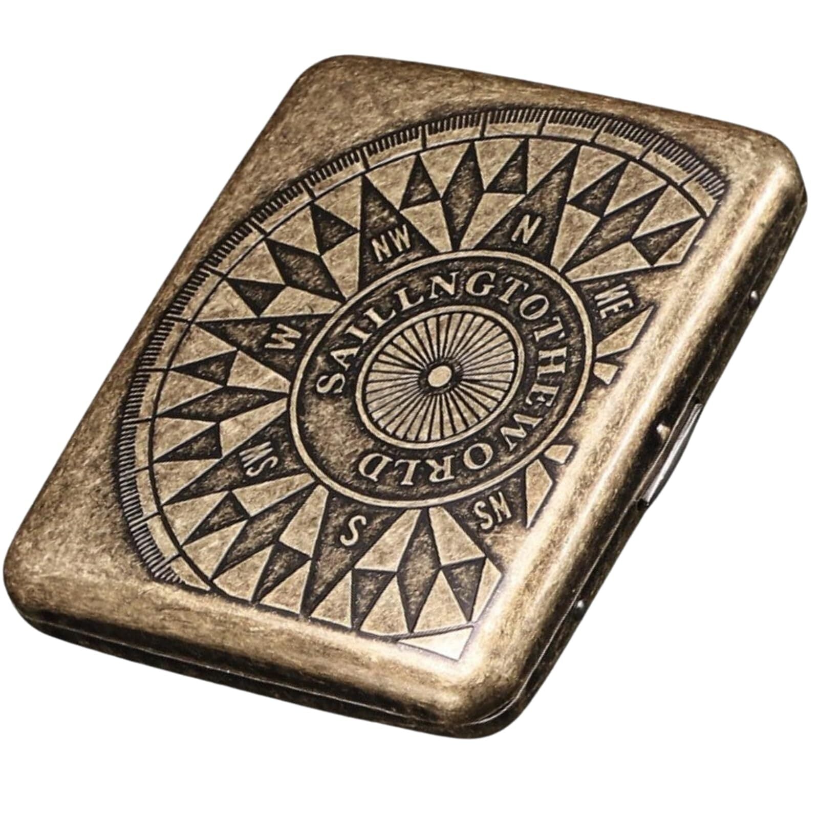 GRASSCALM アンティーク調 タバコ シガレット ケース 20本 タバコ収納 煙草入れ たばこ 薄型 スリム おしゃれ かっこいい 男女兼用 (コンパス)