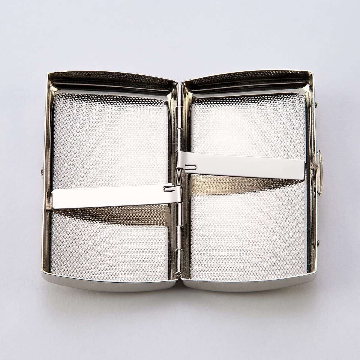 こちらの【坪田パール タバコ ケース】は、70mmのレギュラーサイズ対応で、おしゃれなニッケルサテン仕上げが魅力です。スリムで洗練されたデザインは、あらゆるシーンでスタイルを引き立てること間違いなしです。