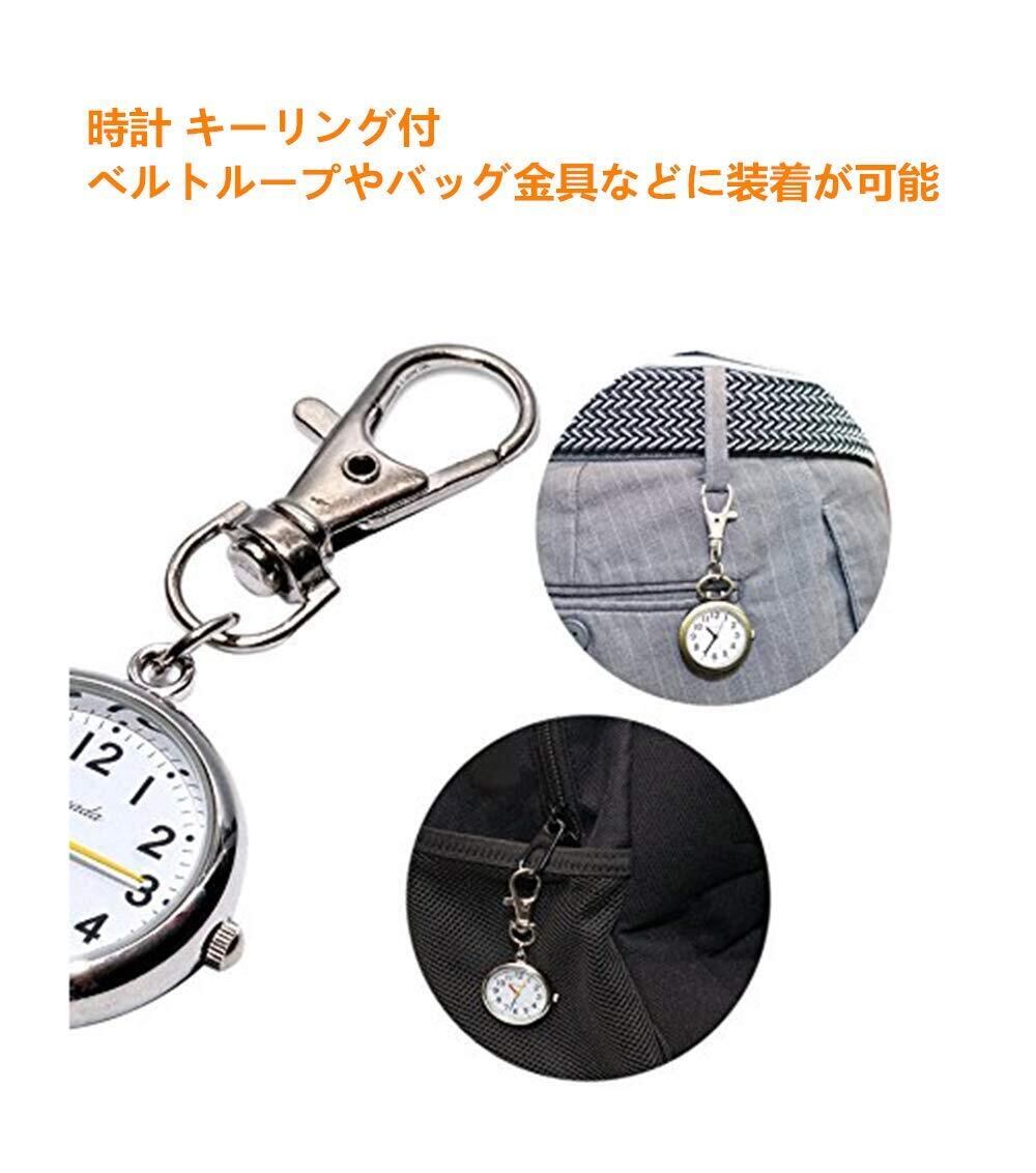\数量限定【YFFSFDC】ナースウォッチ 懐中時計 小型 シンプル キーホルダー ポケットウォッチ 数字 見やすく大きい 文字盤 夜光 クオーツ 男女兼用 (シルバー)/