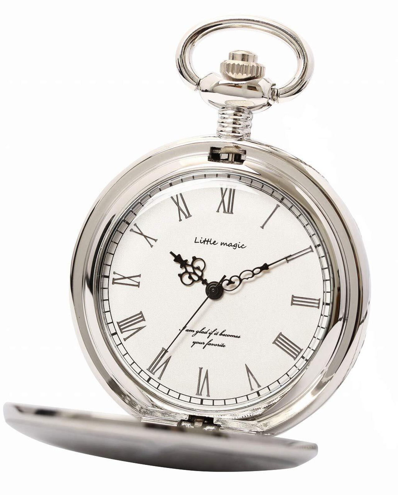 \数量限定【在庫処分】[極限までシンプルデザイン][日本製ムーブメント] 懐中時計 アンティーク 時計【リトルマジック】(シルバー白文字盤)SW/