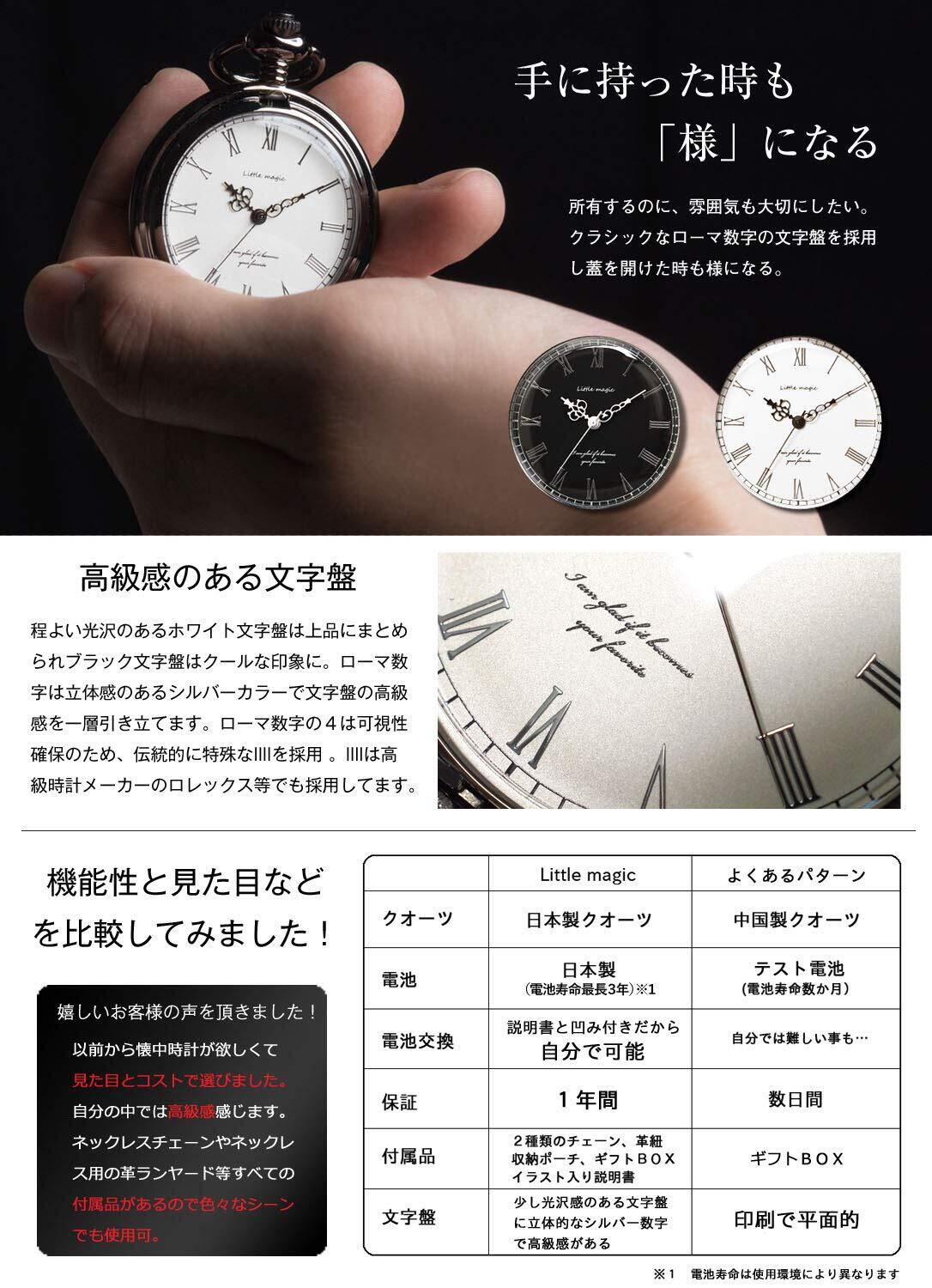 [極限までシンプルデザイン][日本製ムーブメント] 懐中時計 アンティーク 時計【リトルマジック】(シルバー白文字盤)SW