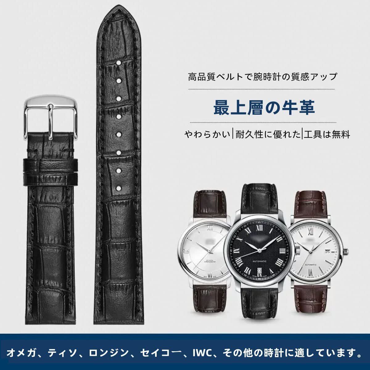 [Nywing] 時計ベルト本革 時計バンド 14mm 16mm 17mm 18mm 19mm 20mm 21mm 22mm 24mm本革ベルト 防水 鰐皮紋様 レザー腕時計ベルトメンズ 工具付き ゴールド シルバー
