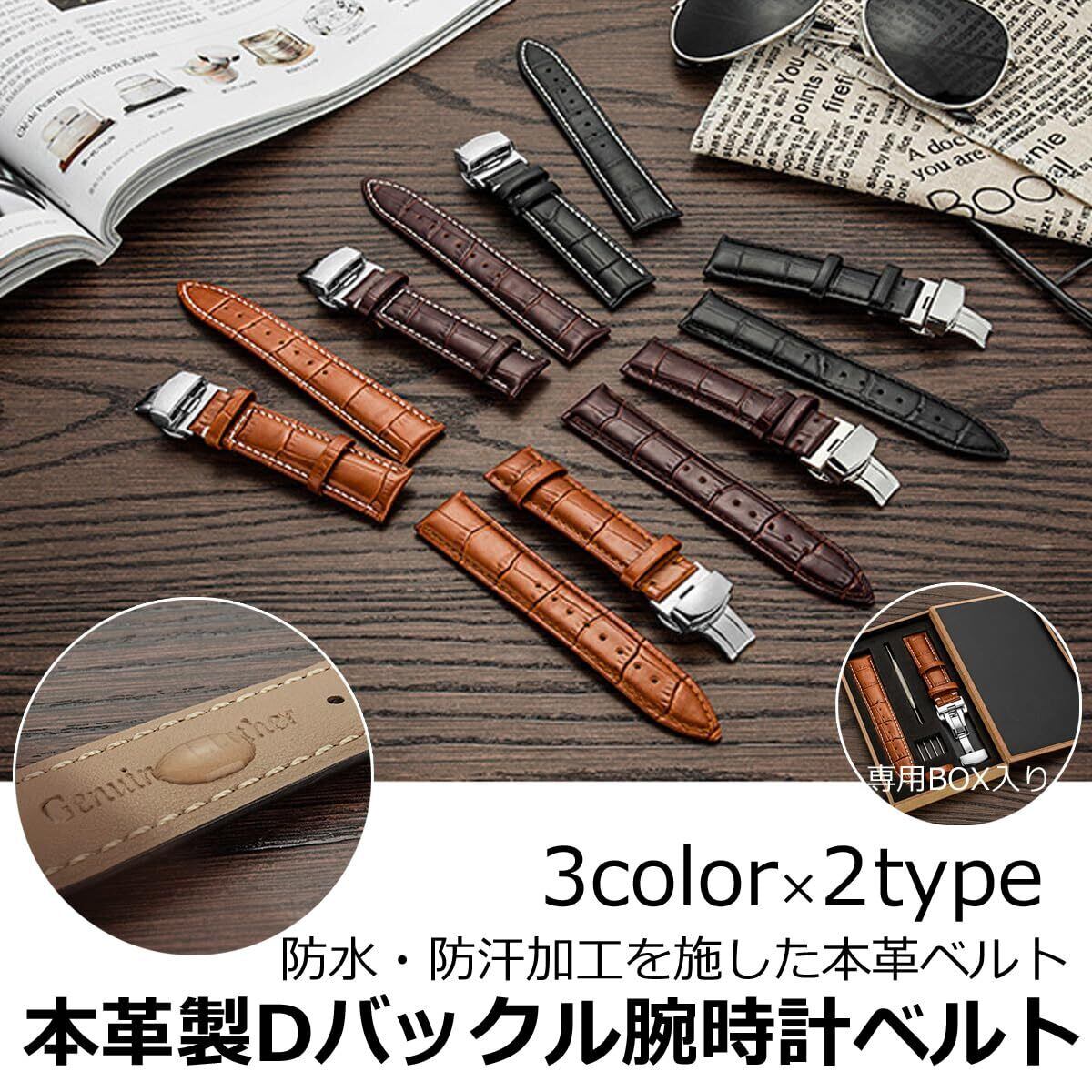 [AriRi] 時計 ベルト 時計 バンド 23mm 24mm 22mm 21mm 20mm 19mm 18mm 本革腕時計バンド 交換ベルト Dバックル 防水 防汗 メンズ腕時計レザーベルト 工具付き ボックス付き