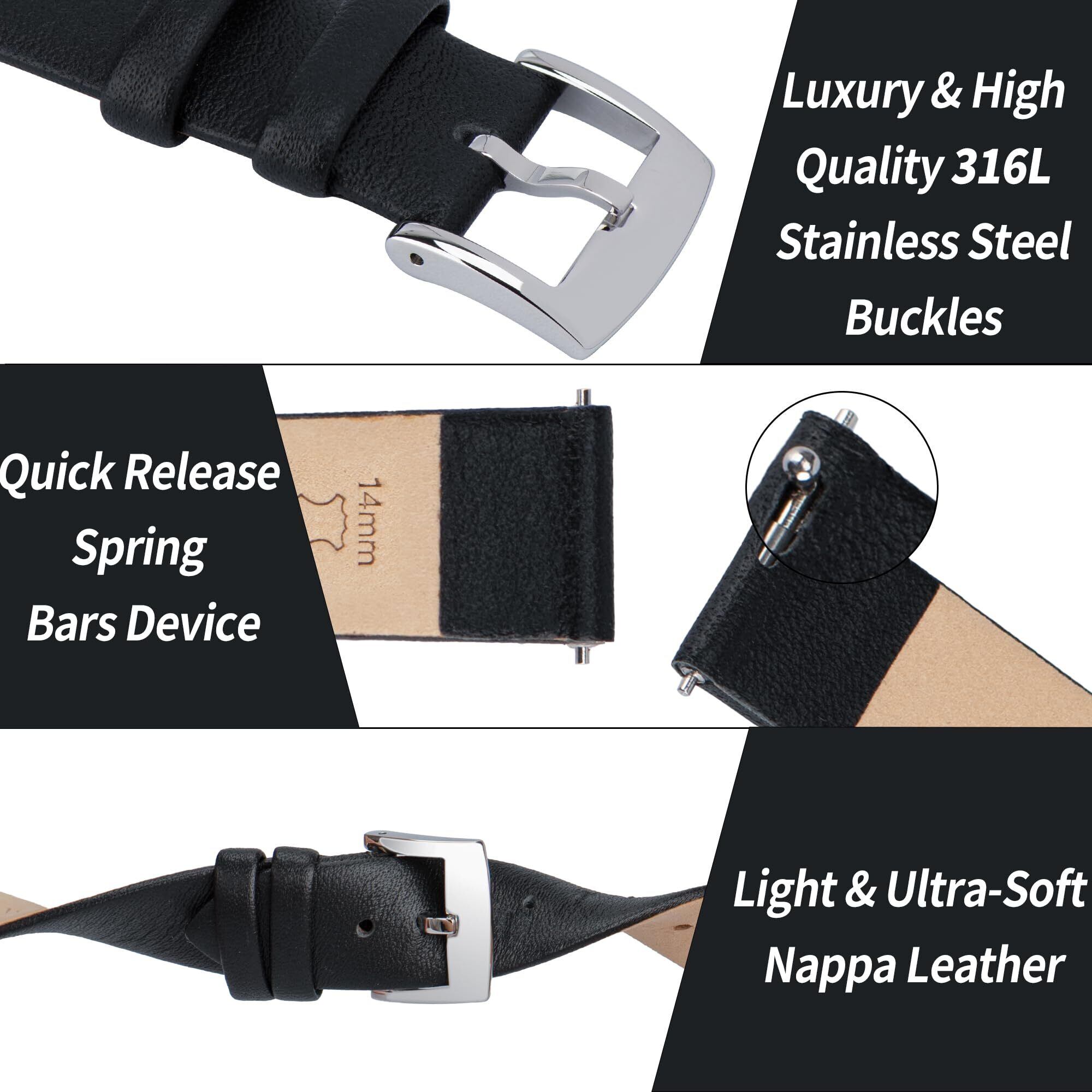 [OTTOODY] 本革時計バンド 時計ベルト12mm 14mm 16mm 18mm 20mm 22mm エレガント&超ソフト カーフレザー 腕時計交換バンド 時計とスマートウォッチ用 クイックリリース 交換ベルト 工具は不要です 女性、男性用