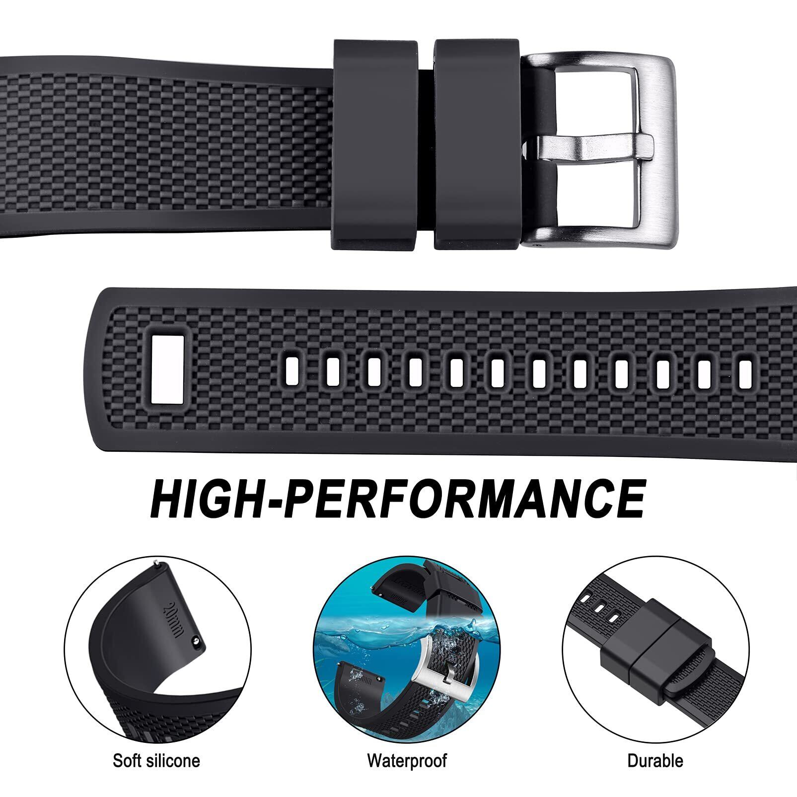 1.高級素材 - この時計バンドは、非常に弾性、肌に優しい、柔らかいシリコンで作られており、316ステンレス鋼タングバックルを装備し、選択したクイックリリースピン、それは、防水性と汗証拠、非常に簡単に着用し、柔軟で非常に耐久性があります。