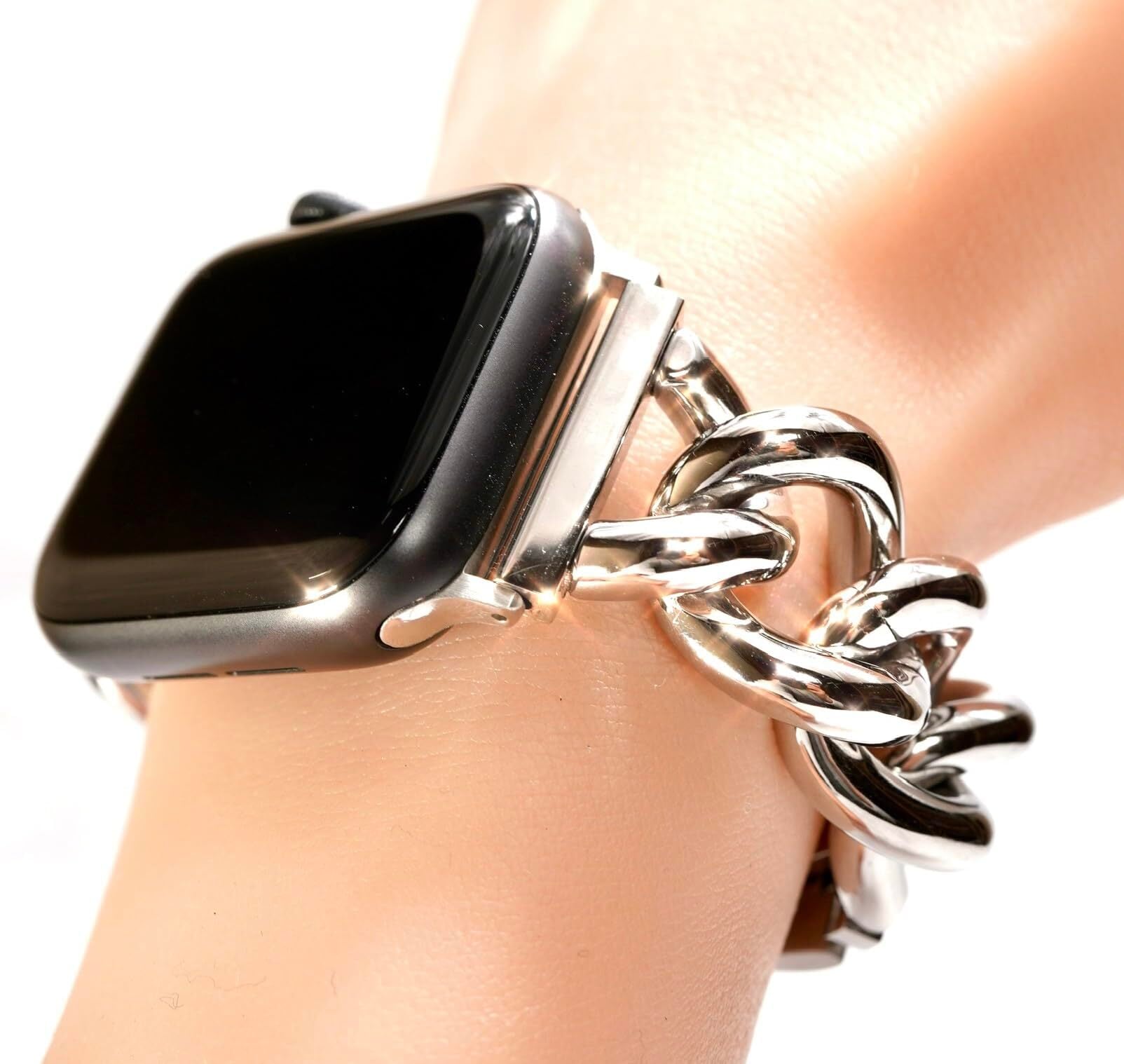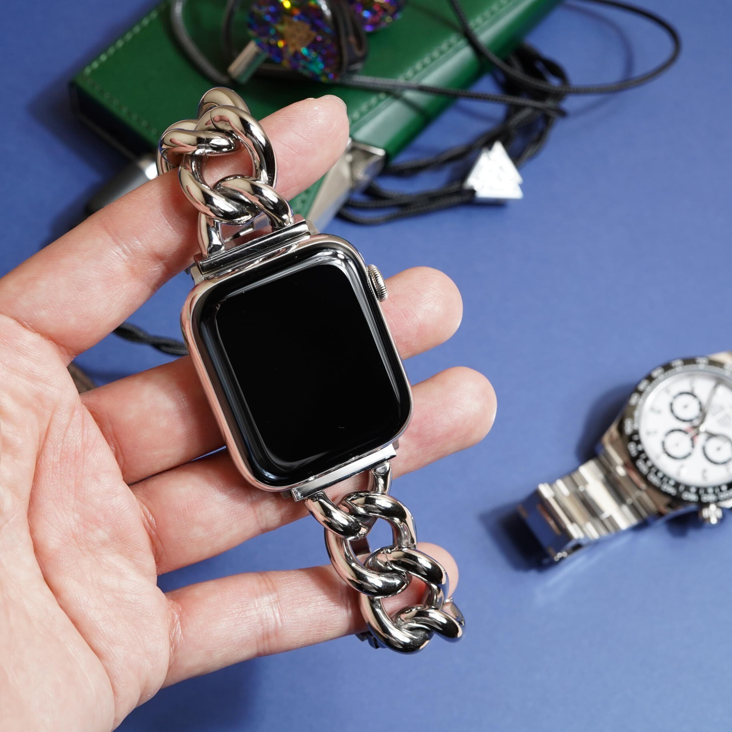 この【Royce&Roland チェーンバンド】は、40mm、41mm、42mm、44mm、45mm、46mm、49mmに対応した高品質なステンレス製の腕時計バンドです。洗練されたデザインで、アップルウォッチを華やかに演出し、どんなシーンでもおしゃれを楽しむことができます。