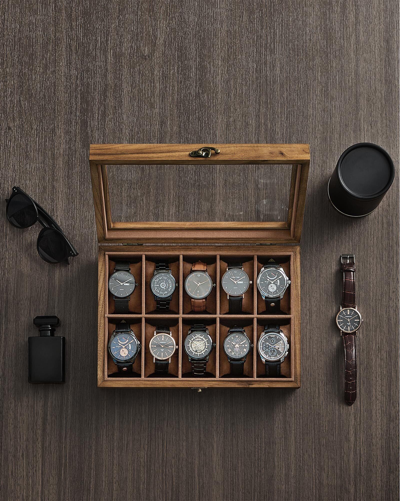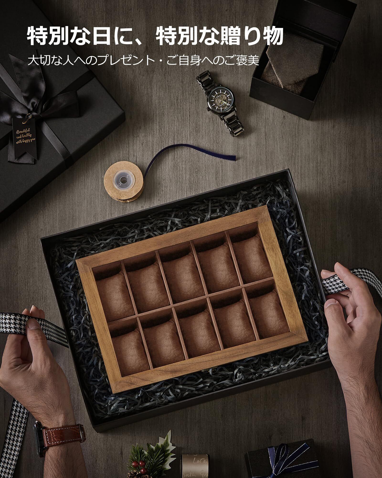 SONGMICS 時計ケース 10本 木製 腕時計収納 コレクションケース 透明窓付き ウォッチボックス アクセサリー保管 父の日プレゼント メンズ レディース 誕生日お祝いギフト JOW100K01