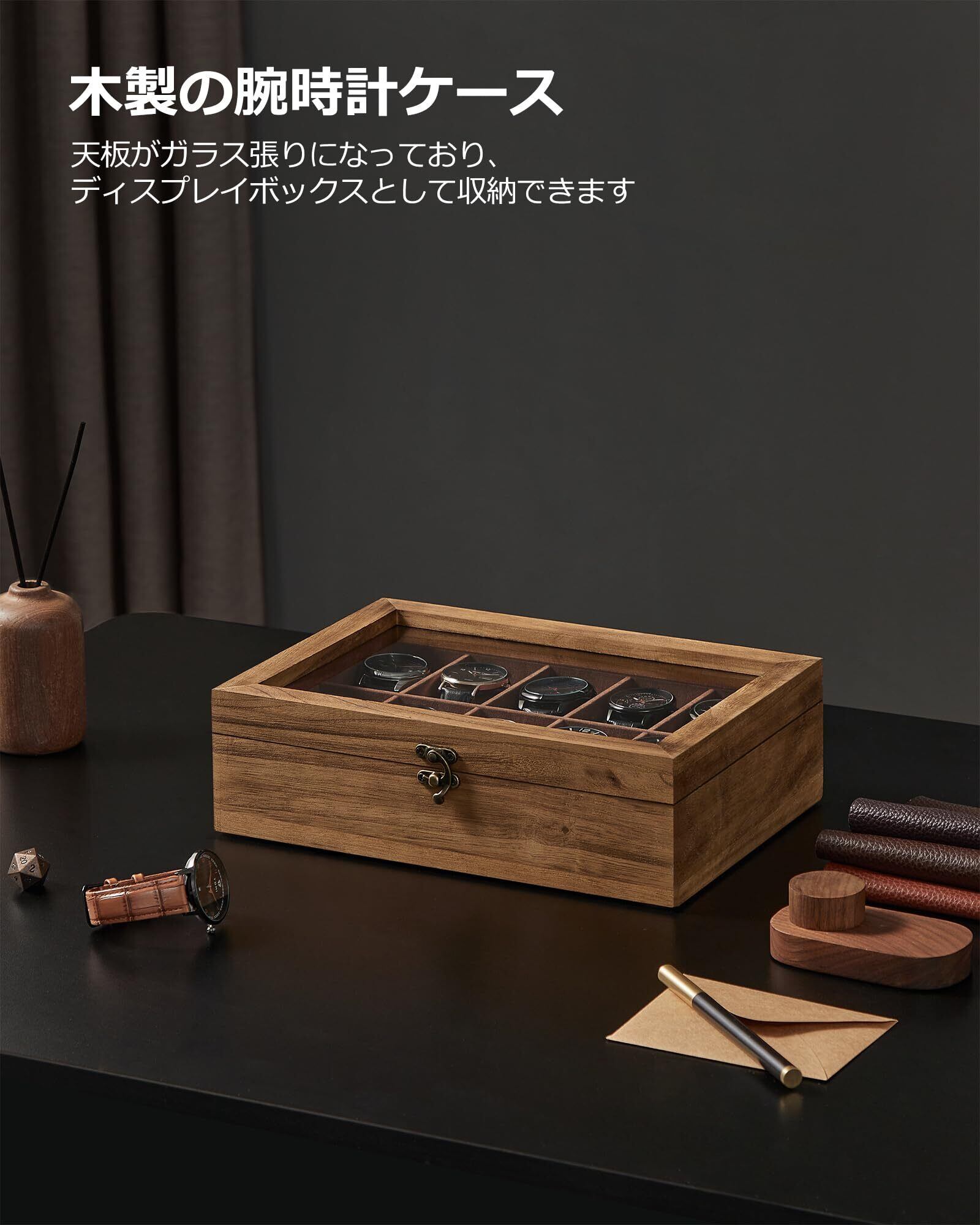 この【SONGMICS 時計ケース】は、10本の腕時計を収納できる贅沢なデザインが特徴です。高級感のある木製素材と透明な窓が組み合わさり、お部屋のインテリアとしても最適です。あなたのコレクションをスタイリッシュに展示し、管理することができます。