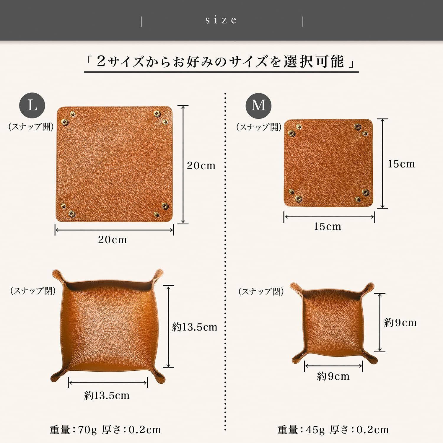 【 Lサイズ 】 約 縦20 × 横20 × 厚み0.2cm 【 Mサイズ 】 縦15 × 横15 × 厚み0.2cm 【 素材 】 牛本革 シュリンクレザ0(ベジタブルタンニン鞣し) 【 カラー 】 ロイヤルブラック・レトロキャメル・ダークブラウン・グレージュ・エトープ・スワニーピンク・スカイブルー