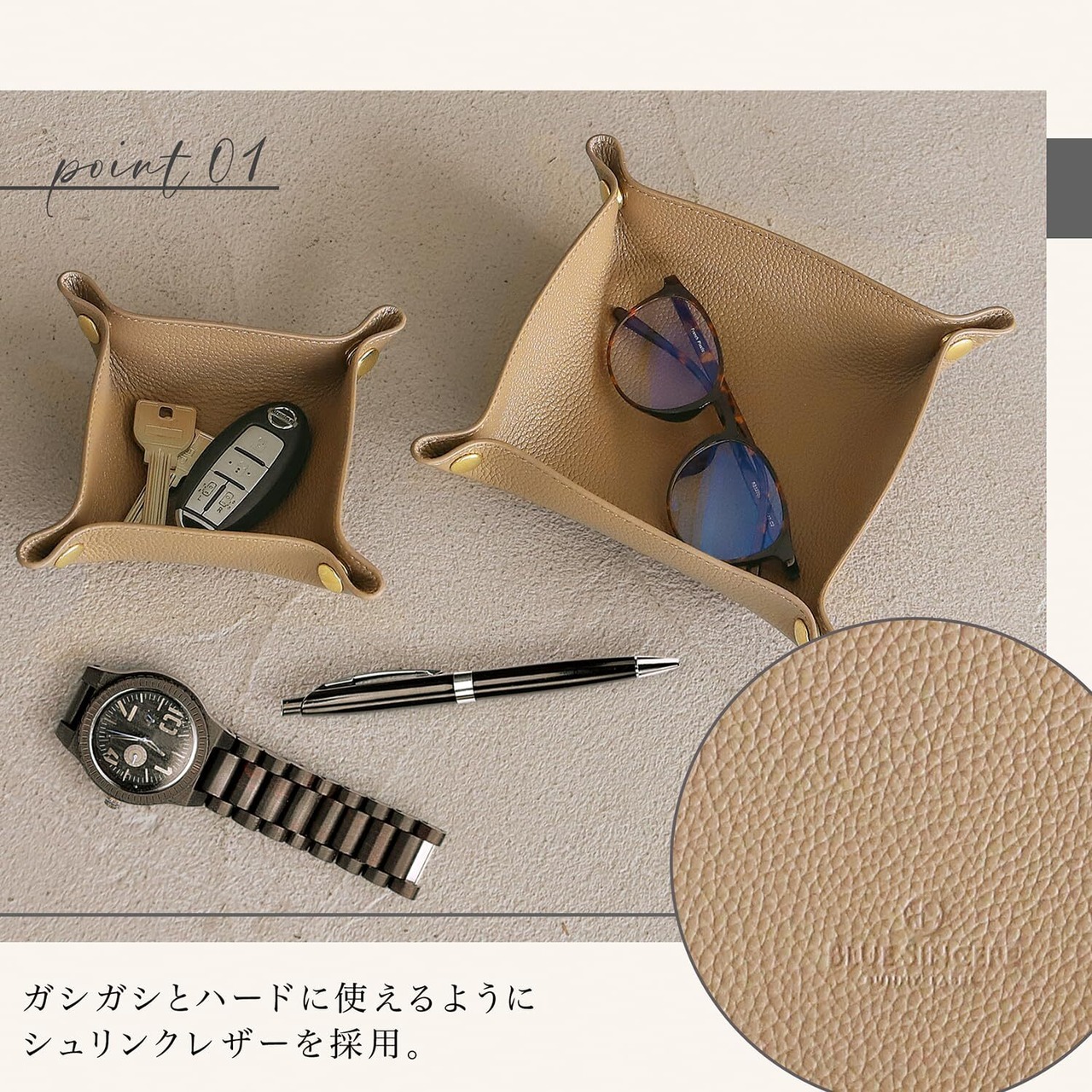[BLUE SINCERE] 小物入れ トレー 本革 レザー 収納 鍵入れ 腕時計 指輪 メガネ置き シンプル デザイン レザートレー アクセサリーケース / KI2 (Mサイズ, エトープ)