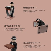 【やさしいデザイン】定感のあるスタンドが腕時計をしっかり支えてくれます。トレイの表面はゴムスポンジで、アクセサリー等傷をつけません。