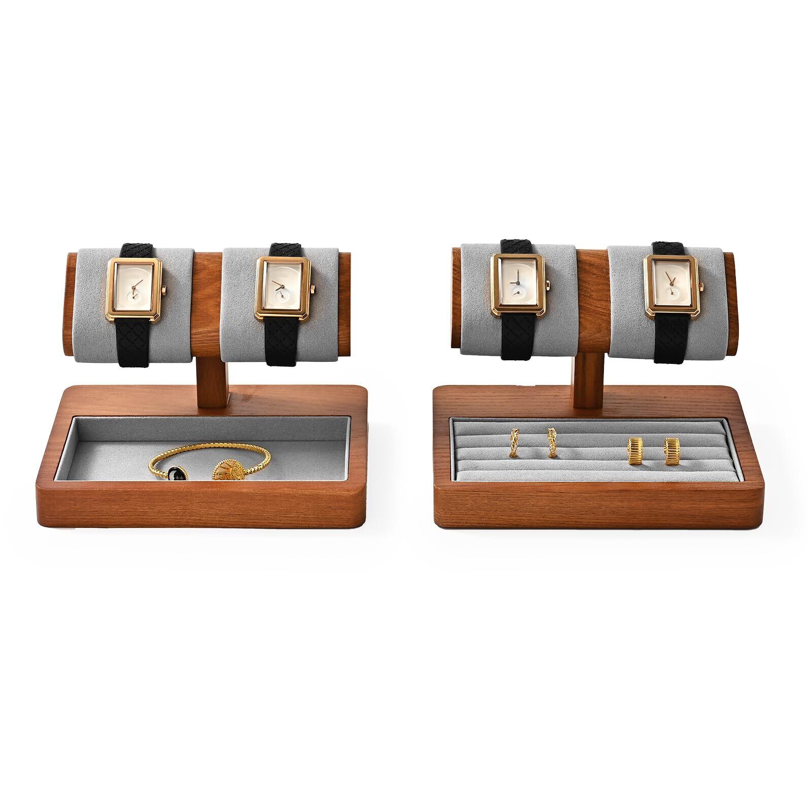 Oirlv 時計スタンド 2本 腕時計 スタンド 木製 持ち運び ディスプレイ 収納 撮影 高級 おしゃれ 適格請求書に対応 SM23602 (グレー)