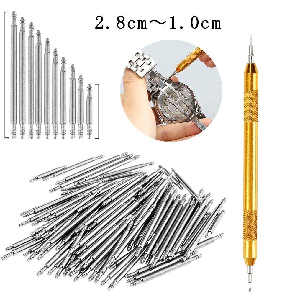 【腕時計工具 セット内容】時計工具 金属ハンマー、バンドピン抜き棒x3(0.8mm/0.9mm/1.0mm)、腕時計修理の精密ドライバー(1.0、1.2、1.6mm)、バネ外棒、バネ外器、バネ外器交換用ビットx7、腕時計交換用ウォッチピン(バネ棒)(2.8cm~1.0cm)、腕時計ホルダー、裏蓋開け器、腕時計三点支持オープナー、腕時計三点支持オープナー替えビットx18、オープナーナイフ、ステンレス製ピンセット、収納ケース付き。