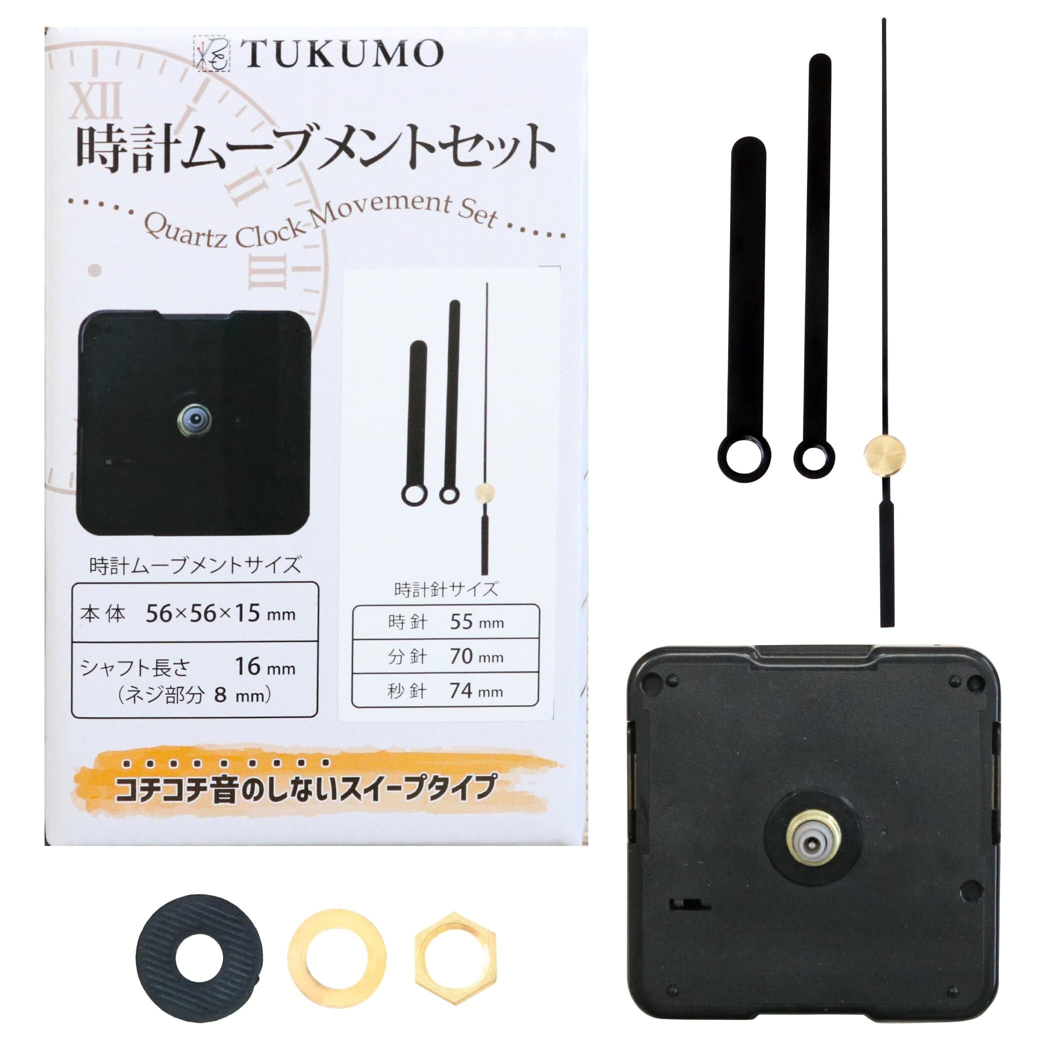 TUKUMO 時計ムーブメントセット スイープ秒針 クラフト用 補修 クォーツ 静音 長い (時計針 長い②)