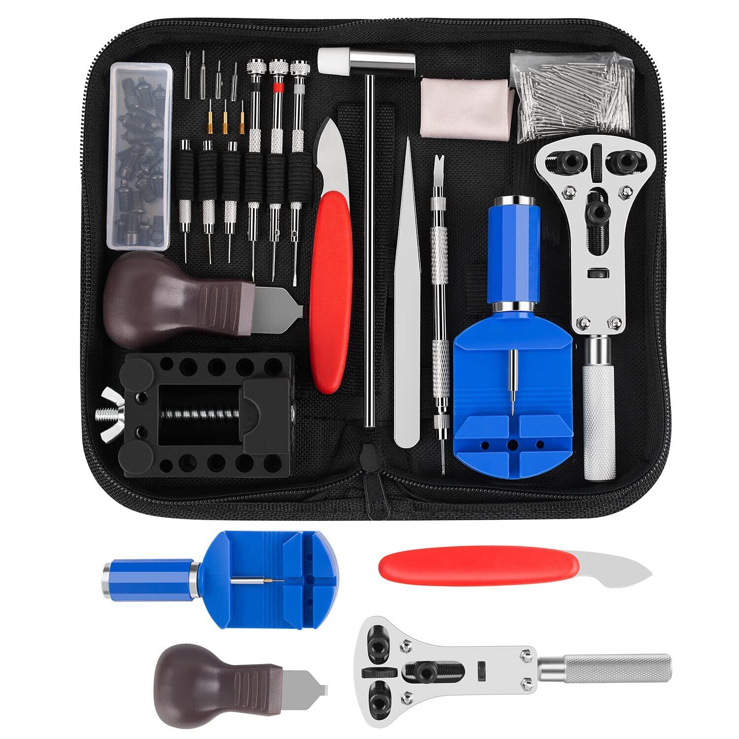 [ColiChili] 220点セット時計工具 腕時計修理 電池交換 時計ベルト交換 バンド調整 裏蓋オープナ 180本バネ棒付き 収納ケース付き 品質が良い